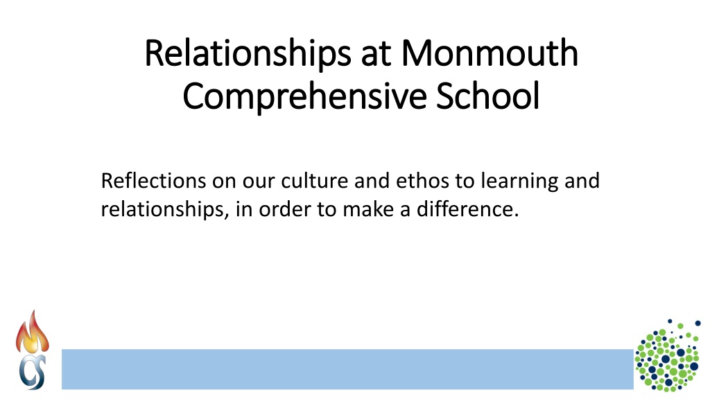 Relationships at Monmouth Relationships at Monmouth Comprehensive School Comprehensive School Reflections on our culture and ethos to learning and relationships, in order to make a difference.