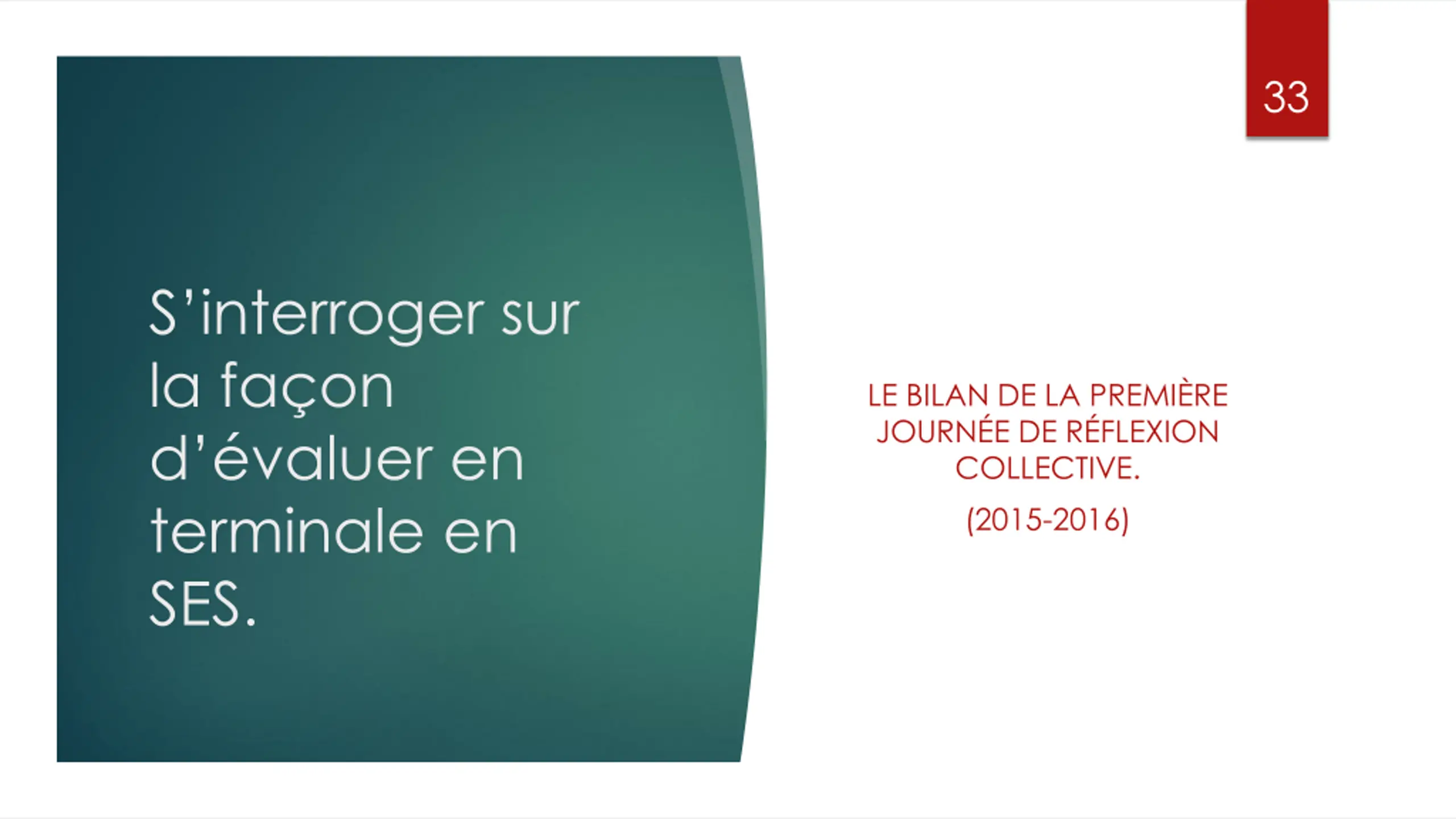 33 S interroger sur la fa on d valuer en terminale en SES. LE BILAN DE LA PREMI RE JOURN E DE R FLEXION COLLECTIVE. (2015-2016)
