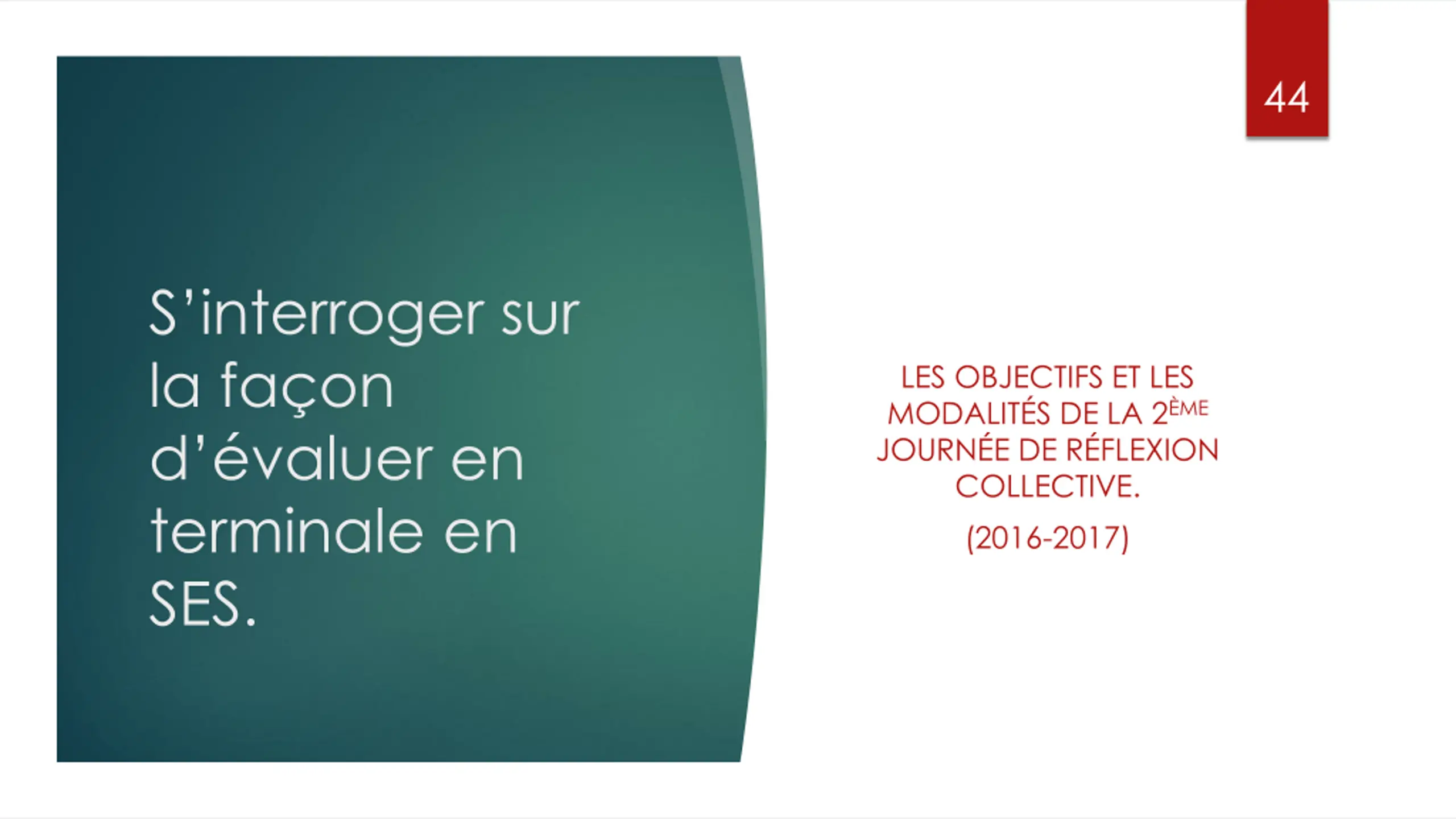 44 S interroger sur la fa on d valuer en terminale en SES. LES OBJECTIFS ET LES MODALIT S DE LA 2 ME JOURN E DE R FLEXION COLLECTIVE. (2016-2017)