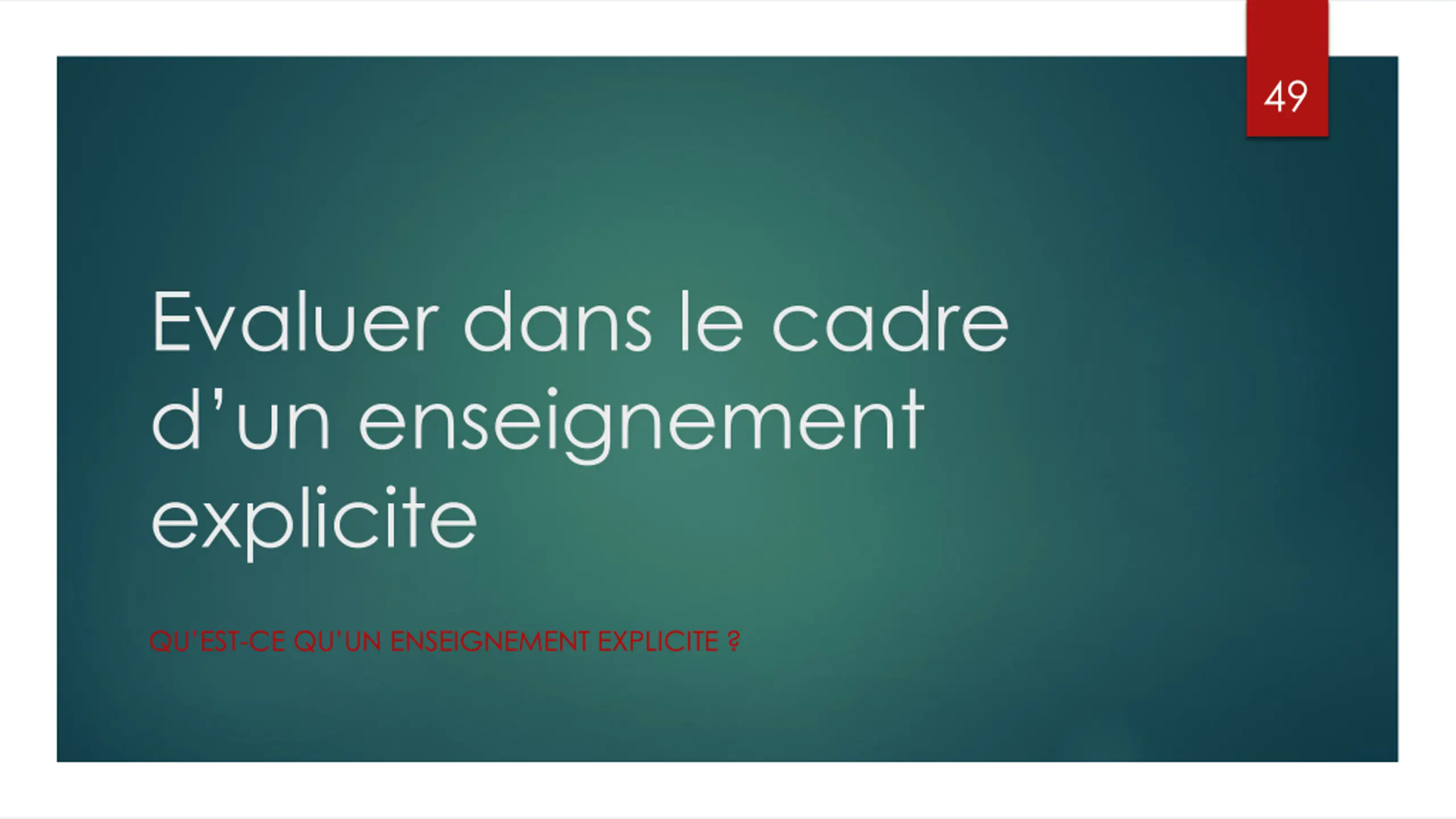 49 Evaluer dans le cadre d un enseignement explicite QU EST-CE QU UN ENSEIGNEMENT EXPLICITE ?