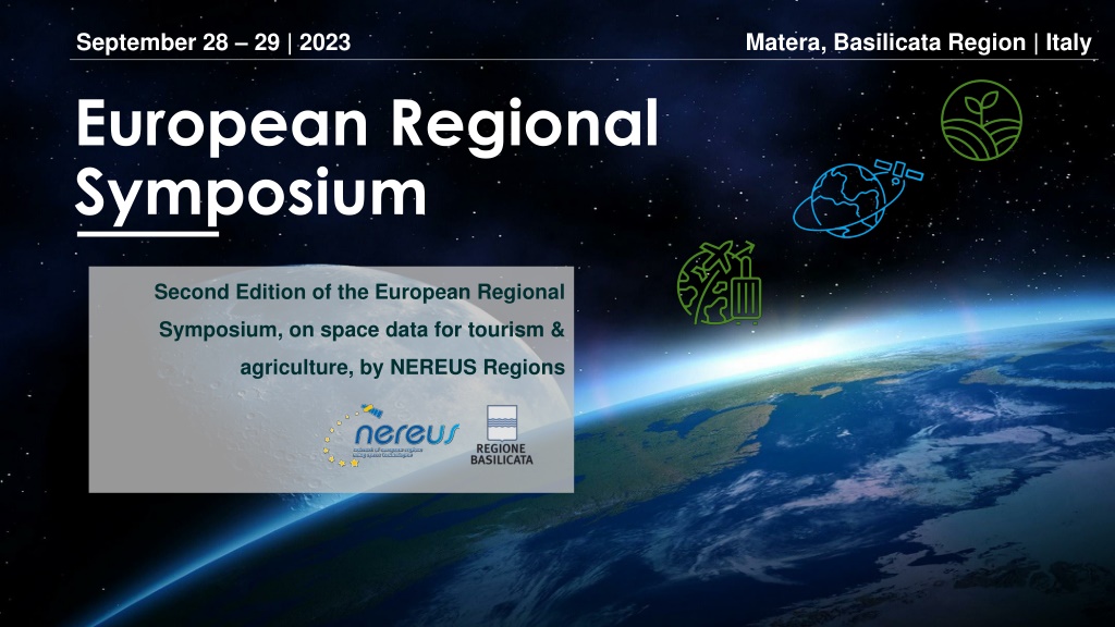 September 28 29 | 2023 Matera, Basilicata Region | Italy European Regional Symposium Second Edition of the European Regional Symposium, on space data for tourism & agriculture, by NEREUS Regions