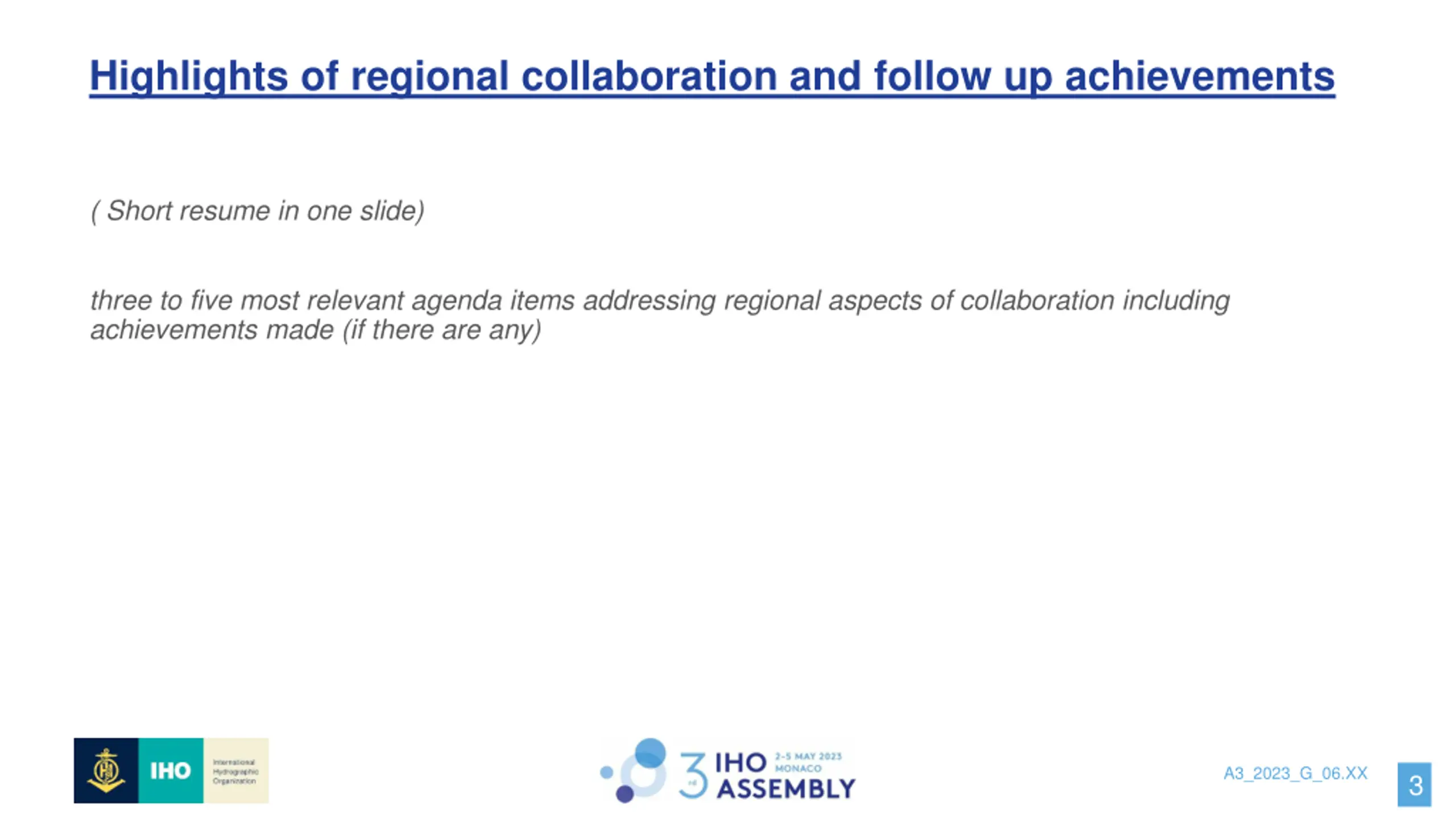 Highlights of regional collaboration and follow up achievements ( Short resume in one slide) three to five most relevant agenda items addressing regional aspects of collaboration including achievements made (if there are any) A3_2023_G_06.XX 3