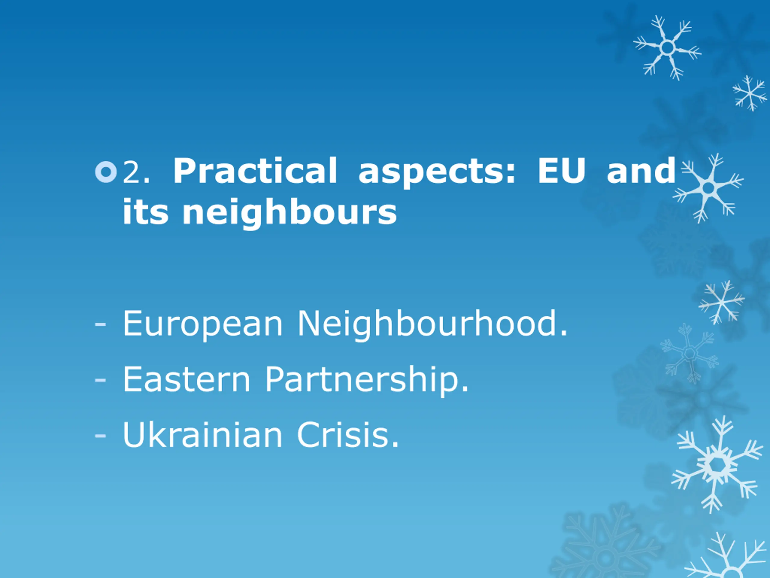 2. Practical aspects: EU and its neighbours - European Neighbourhood. - Eastern Partnership. - Ukrainian Crisis.
