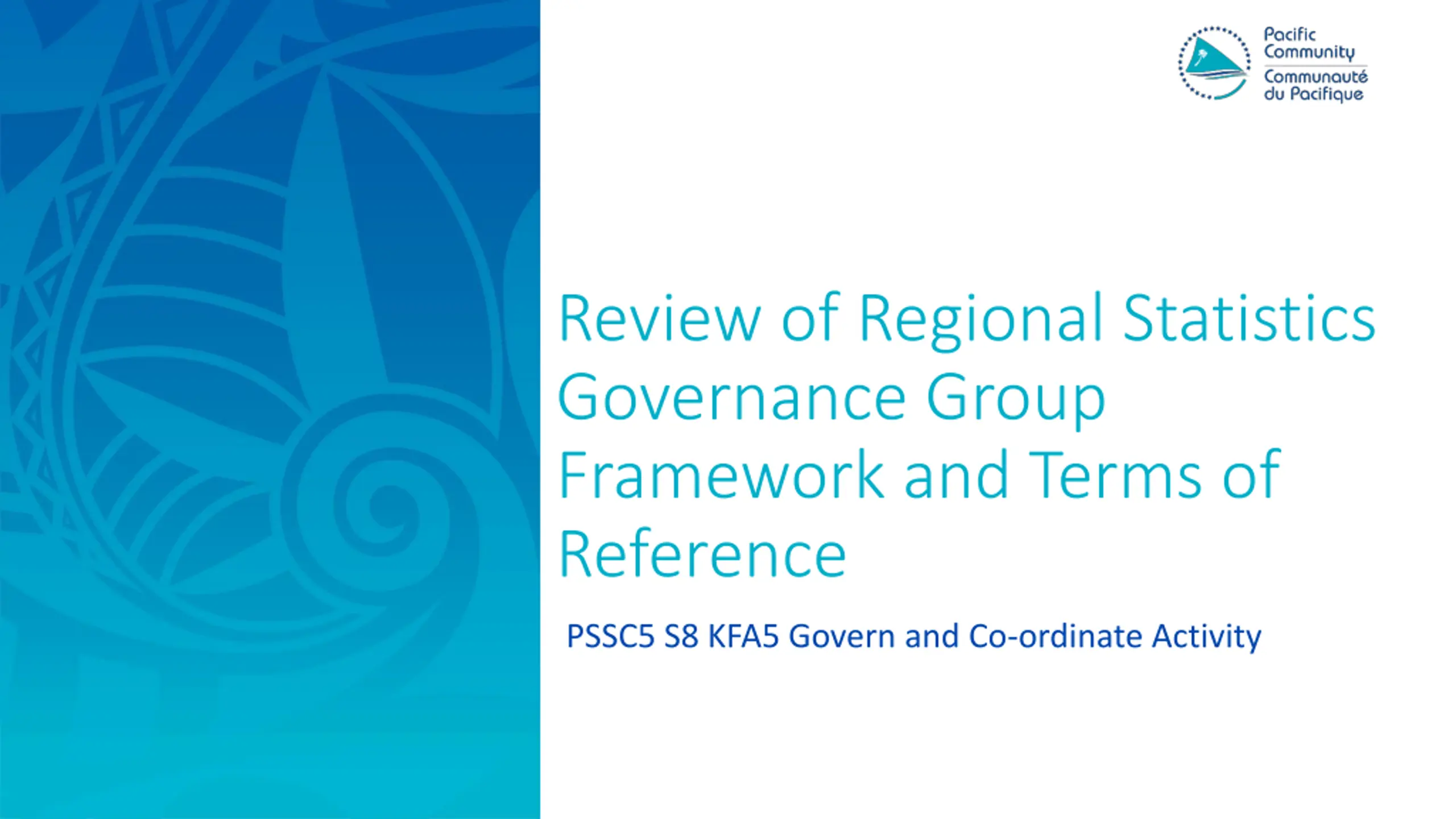 Review of Regional Statistics Governance Group Framework and Terms of Reference PSSC5 S8 KFA5 Govern and Co-ordinate Activity