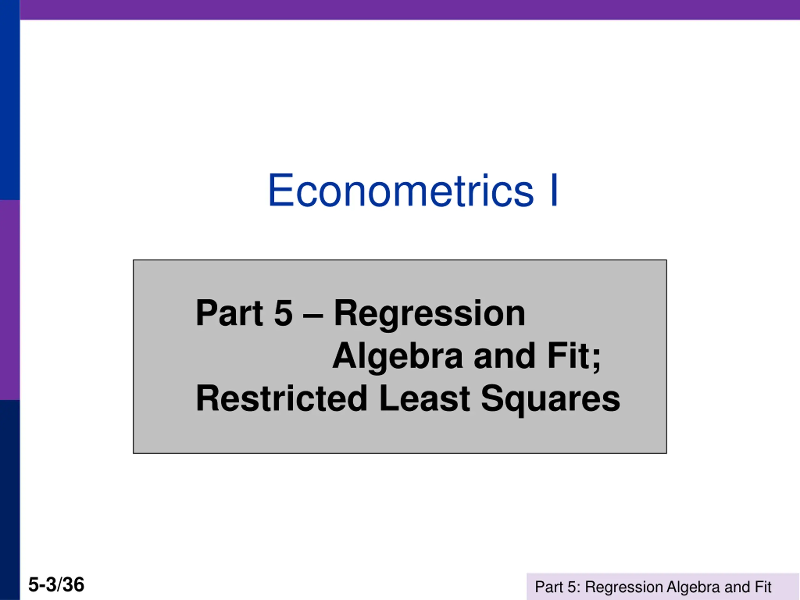 Econometrics I Part 5 Regression Algebra and Fit; Restricted Least Squares 5-3/36 Part 5: Regression Algebra and Fit