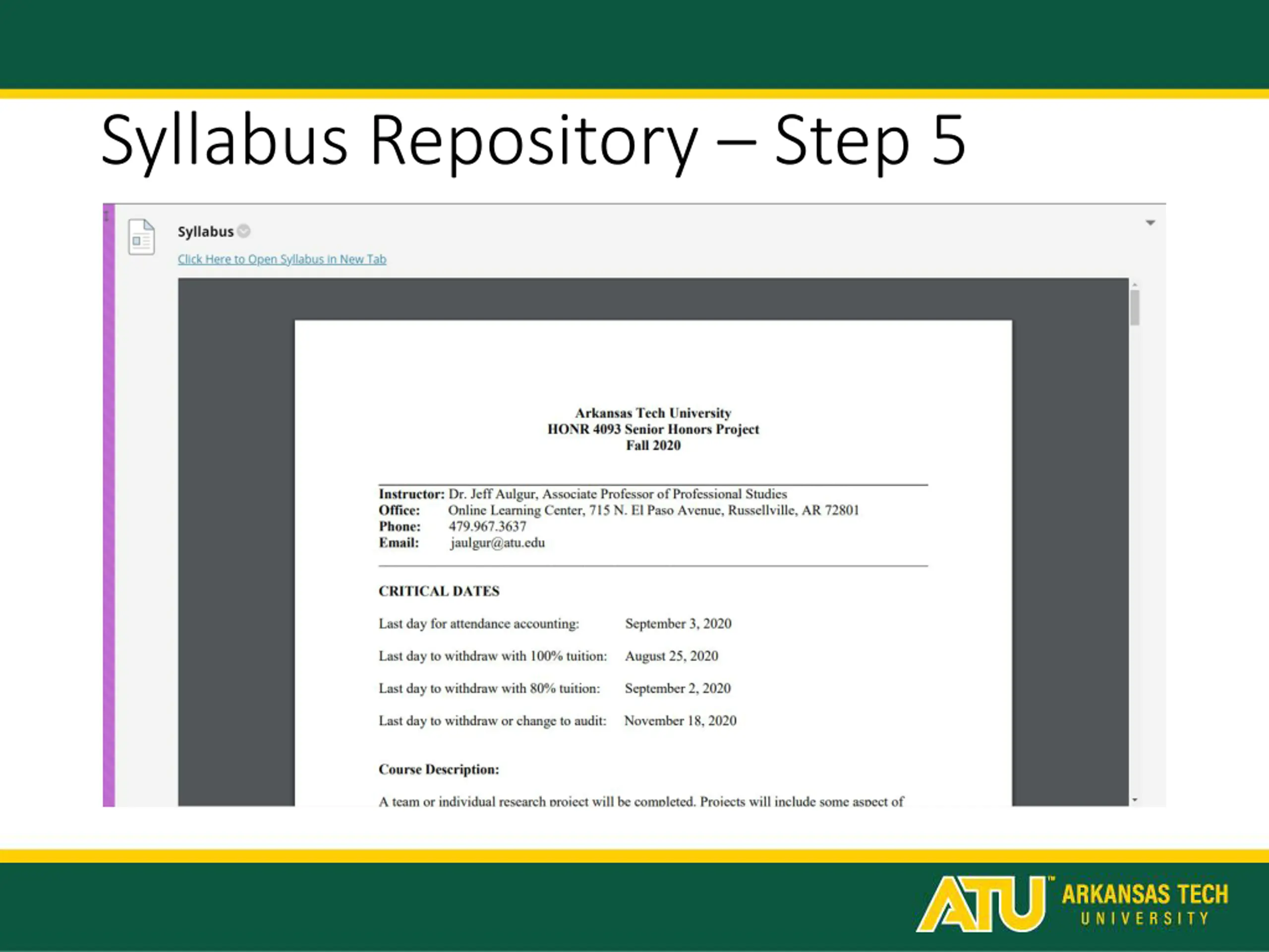 Syllabus Repository Step 3 Note: Must be a PDF File