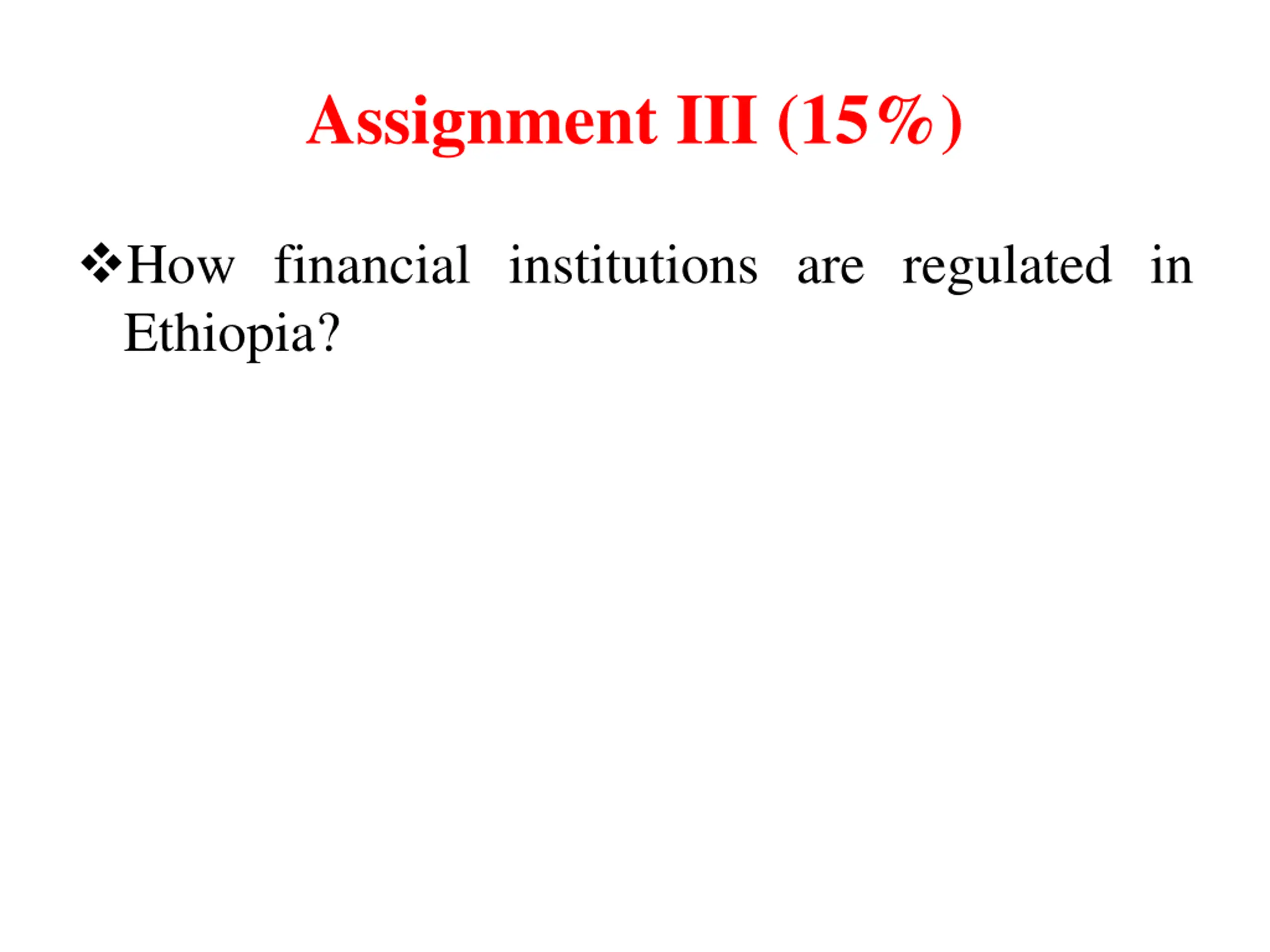 Assignment III (15%) How financial institutions are regulated in Ethiopia?