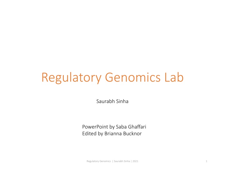 Regulatory Genomics Lab Saurabh Sinha PowerPoint by Saba Ghaffari Edited by Brianna Bucknor Regulatory Genomics | Saurabh Sinha | 2021 1