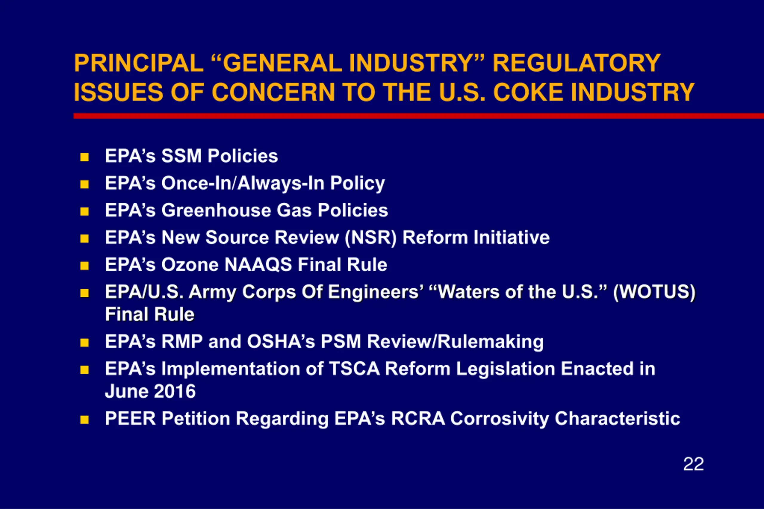 Regulatory Issues in the U.S. Coke Industry - ACCCI Overview