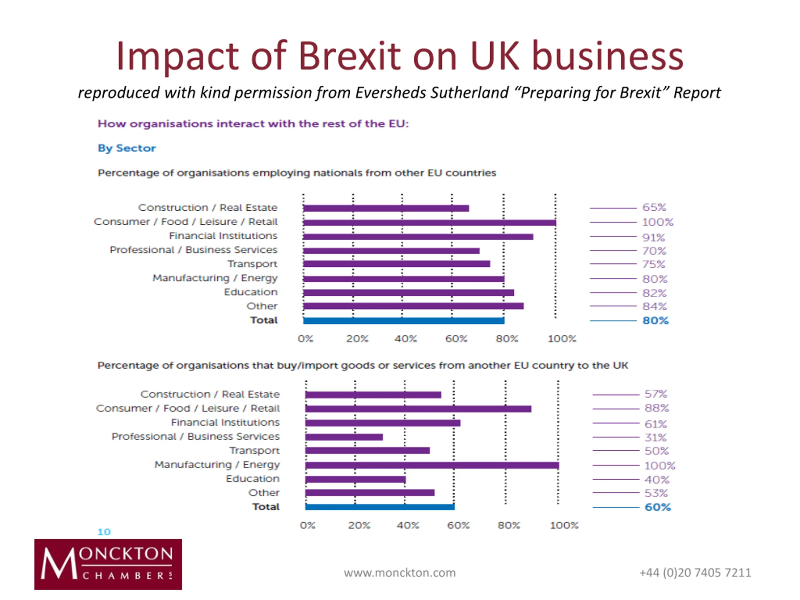 Impact of Brexit on UK business reproduced with kind permission from Eversheds Sutherland Preparing for Brexit Report www.monckton.com +44 (0)20 7405 7211
