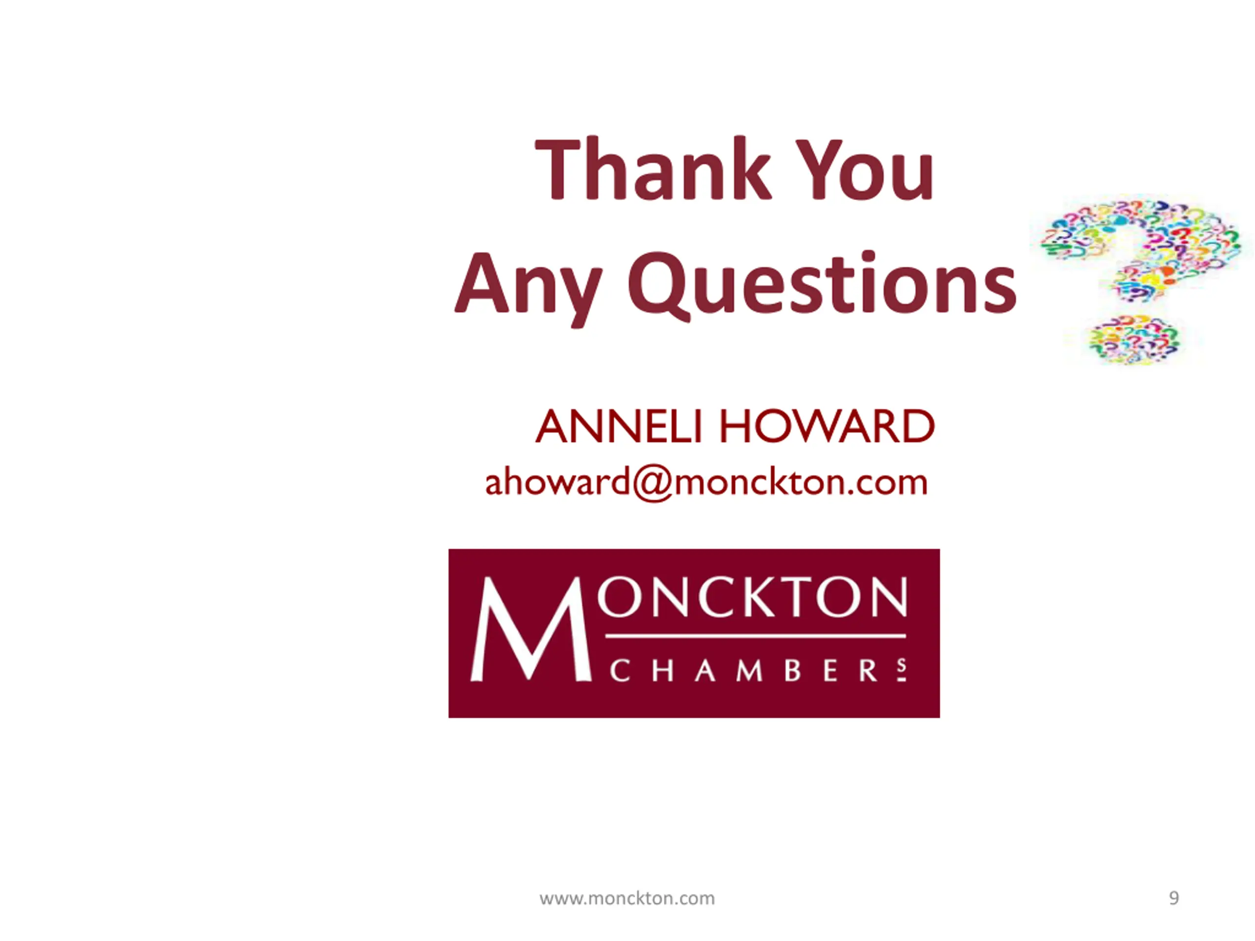 Thank You Any Questions ANNELI HOWARD ahoward@monckton.com www.monckton.com 9