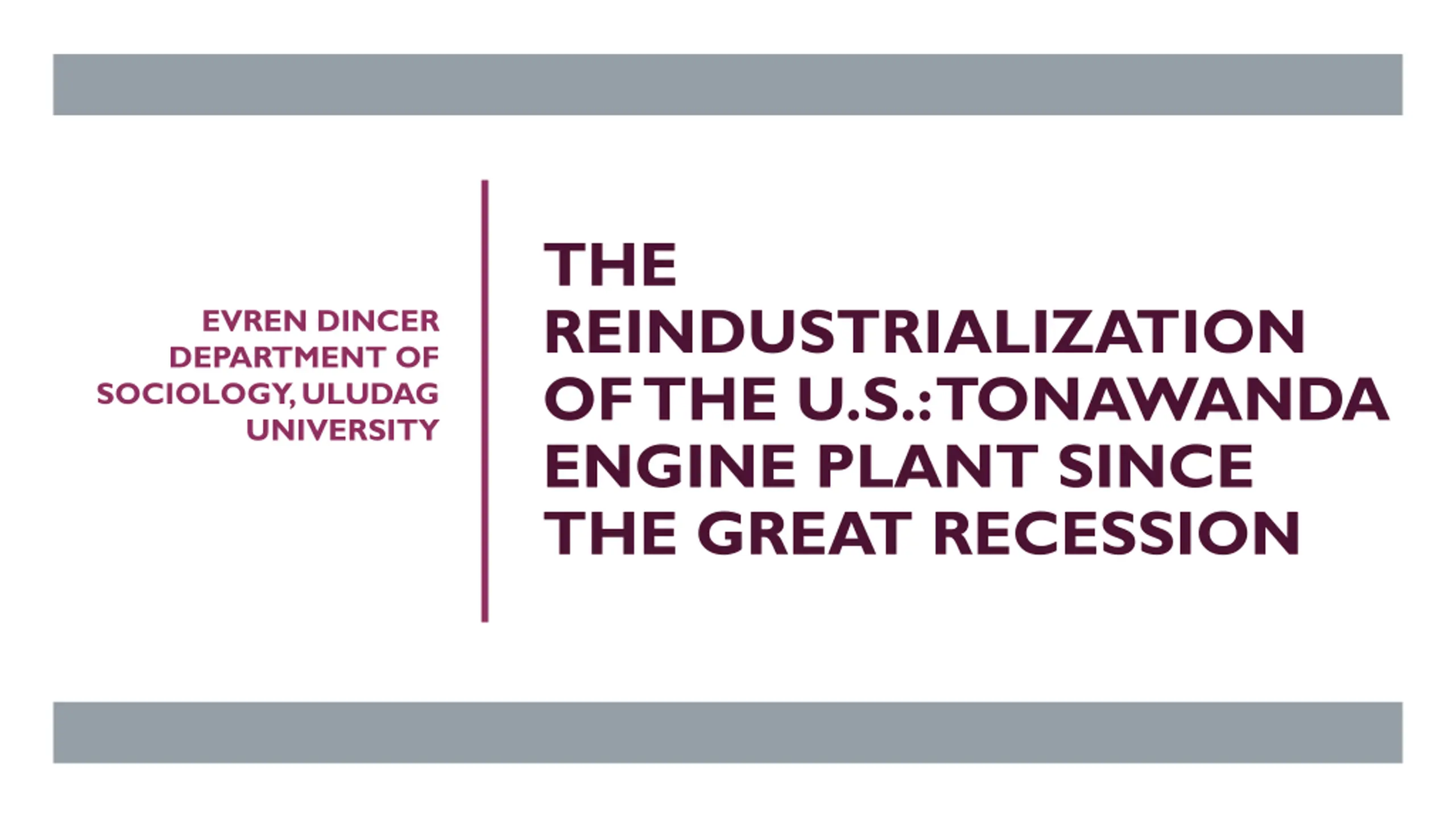 THE REINDUSTRIALIZATION OF THE U.S.: TONAWANDA ENGINE PLANT SINCE THE GREAT RECESSION EVREN DINCER DEPARTMENT OF SOCIOLOGY, ULUDAG UNIVERSITY