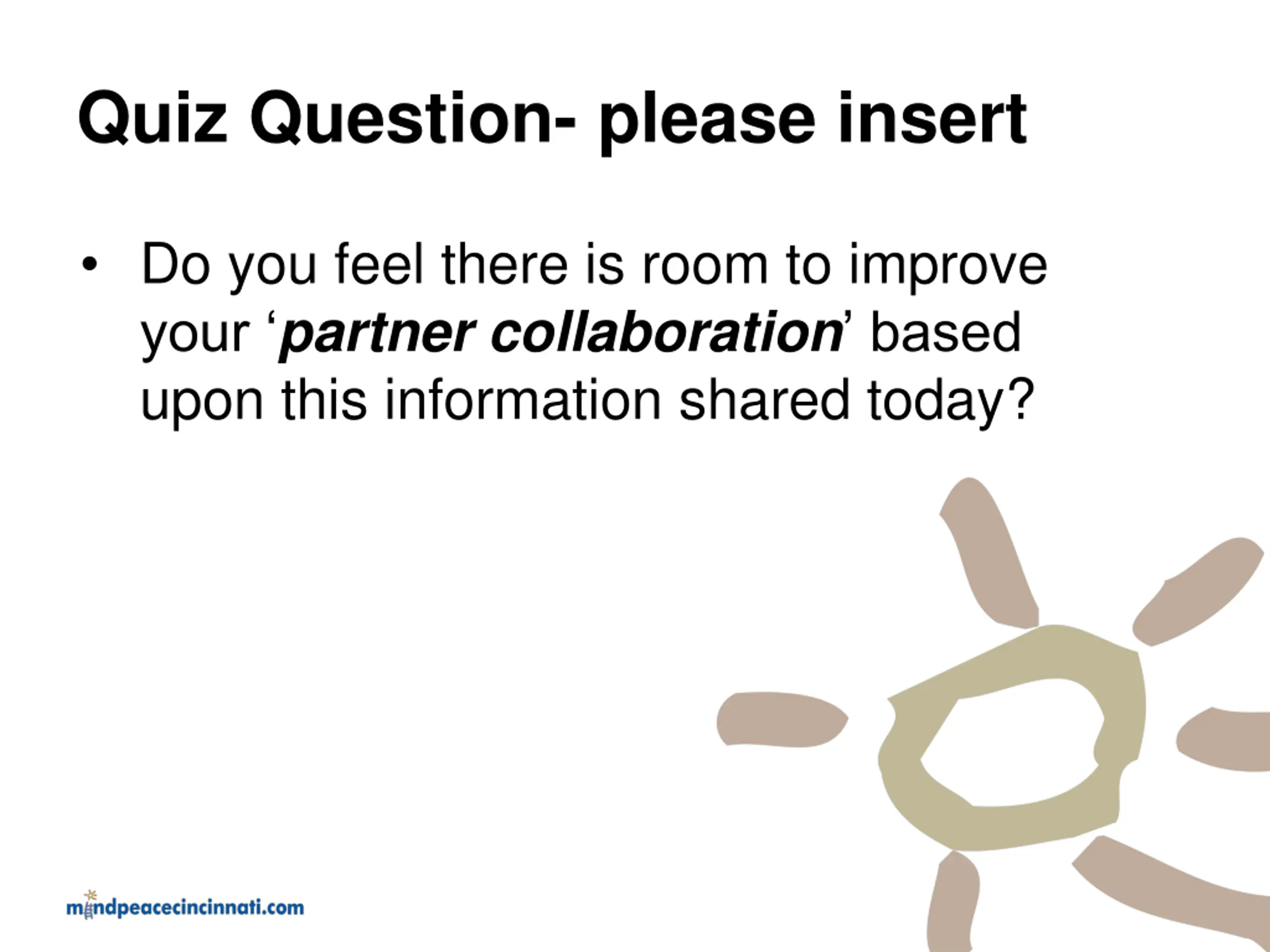 Quiz Question- please insert Do you feel there is room to improve your partner collaboration based upon this information shared today?