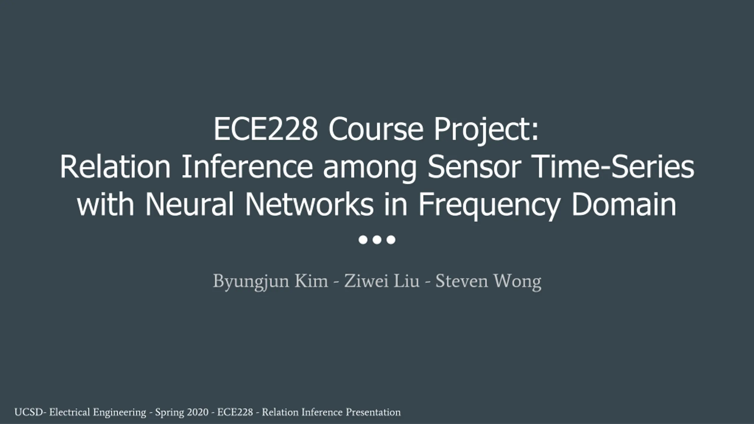 ECE228 Course Project: Relation Inference among Sensor Time-Series with Neural Networks in Frequency Domain Byungjun Kim - Ziwei Liu - Steven Wong UCSD- Electrical Engineering - Spring 2020 - ECE228 - Relation Inference Presentation