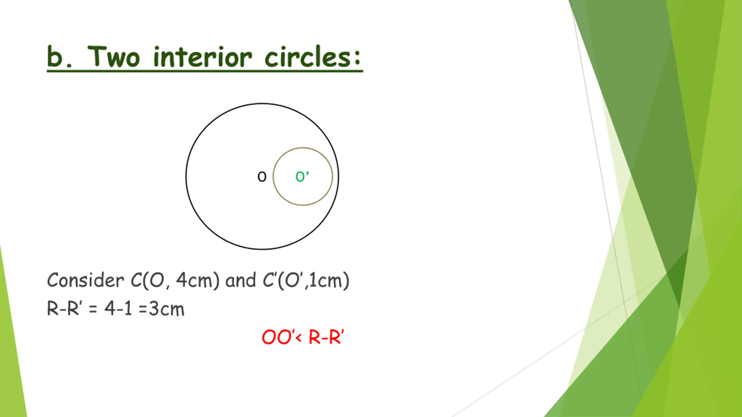 b. Two interior circles: O O Consider C(O, 4cm) and C (O ,1cm) R-R = 4-1 =3cm OO < R-R