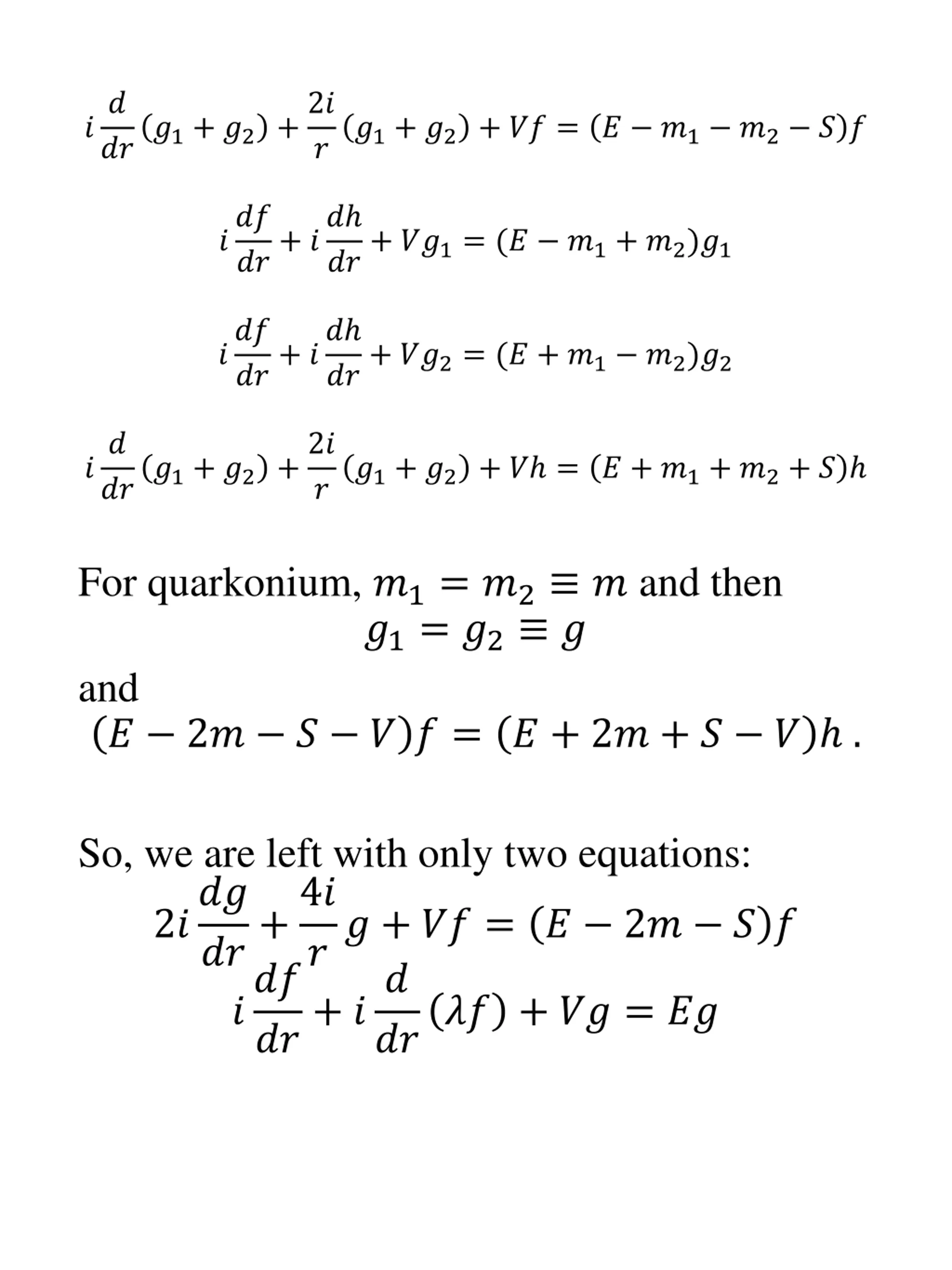 ?? ???1+ ?2 +2? ?1+ ?2 + ?? = ? ?1 ?2 ? ? ? ??? ??+ ?? ??+ ??1= (? ?1+ ?2)?1 ??? ??+ ?? ??+ ??2= (? + ?1 ?2)?2 ?? ???1+ ?2 +2? ?1+ ?2 + ? = ? + ?1+ ?2+ ? ? For quarkonium, ?1= ?2 ? and then ?1= ?2 ? and ? 2? ? ? ? = ? + 2? + ? ? . So, we are left with only two equations: 2??? ?? + ?? = ? 2? ? ? ??? ???? + ?? = ?? ??+4? ??+ ??