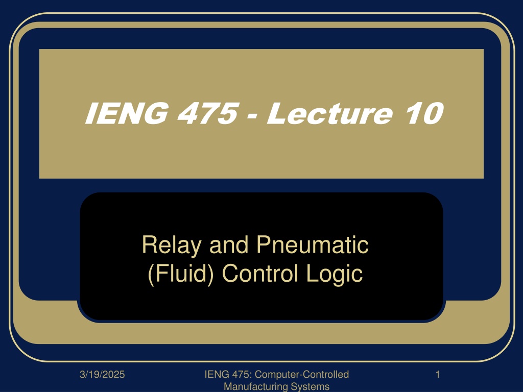 IENG 475 - Lecture 10 Relay and Pneumatic (Fluid) Control Logic 3/19/2025 IENG 475: Computer-Controlled Manufacturing Systems 1