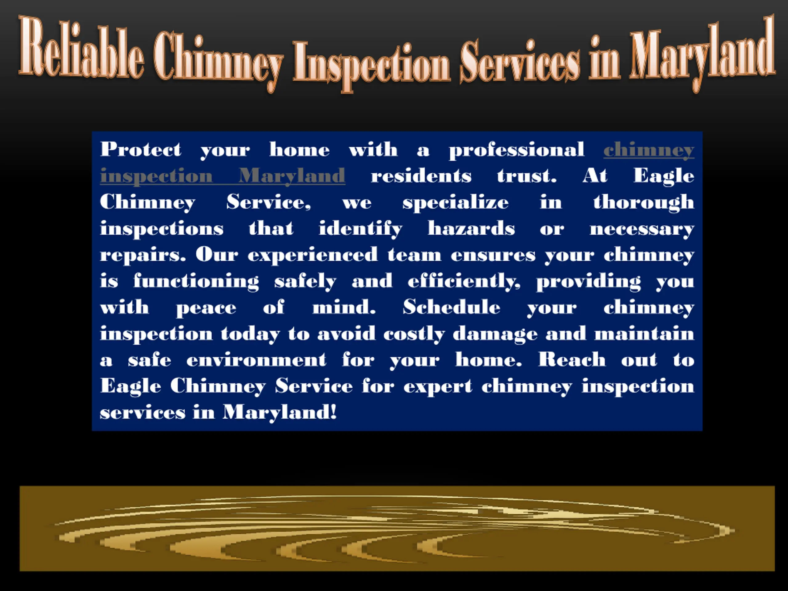 Reliable Chimney Inspection Services in Maryland Reliable Chimney Inspection Services in Maryland Protect your home with a professional chimney inspection Maryland residents trust. At Eagle Chimney Service, we inspections that identify hazards or necessary repairs. Our experienced team ensures your chimney is functioning safely and efficiently, providing you with peace of mind. Schedule your chimney inspection today to avoid costly damage and maintain a safe environment for your home. Reach out to Eagle Chimney Service for expert chimney inspection services in Maryland! specialize in thorough
