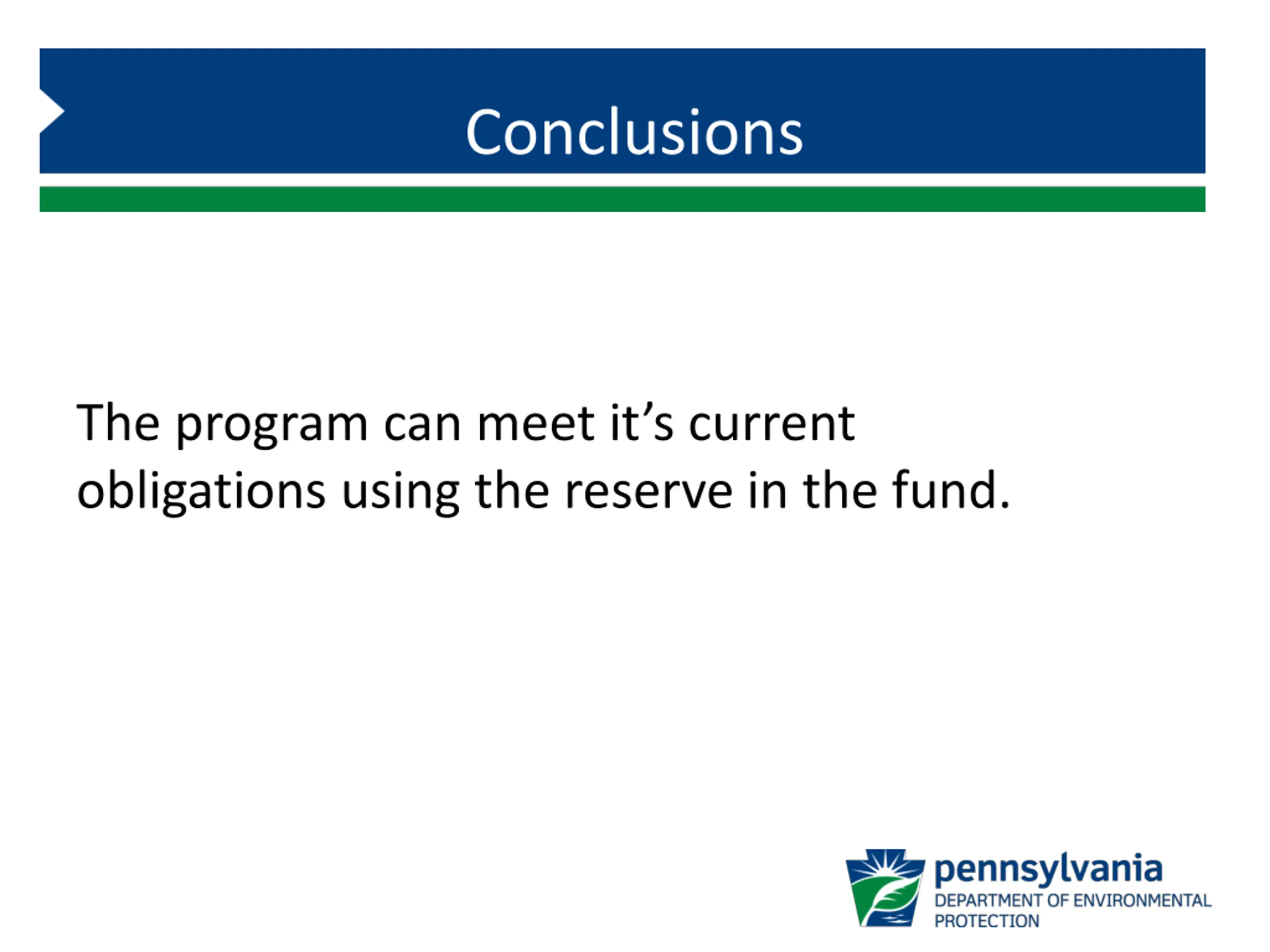Conclusions The program can meet it s current obligations using the reserve in the fund.