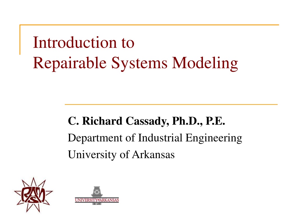 Introduction to Repairable Systems Modeling C. Richard Cassady, Ph.D., P.E. Department of Industrial Engineering University of Arkansas U of A Logo