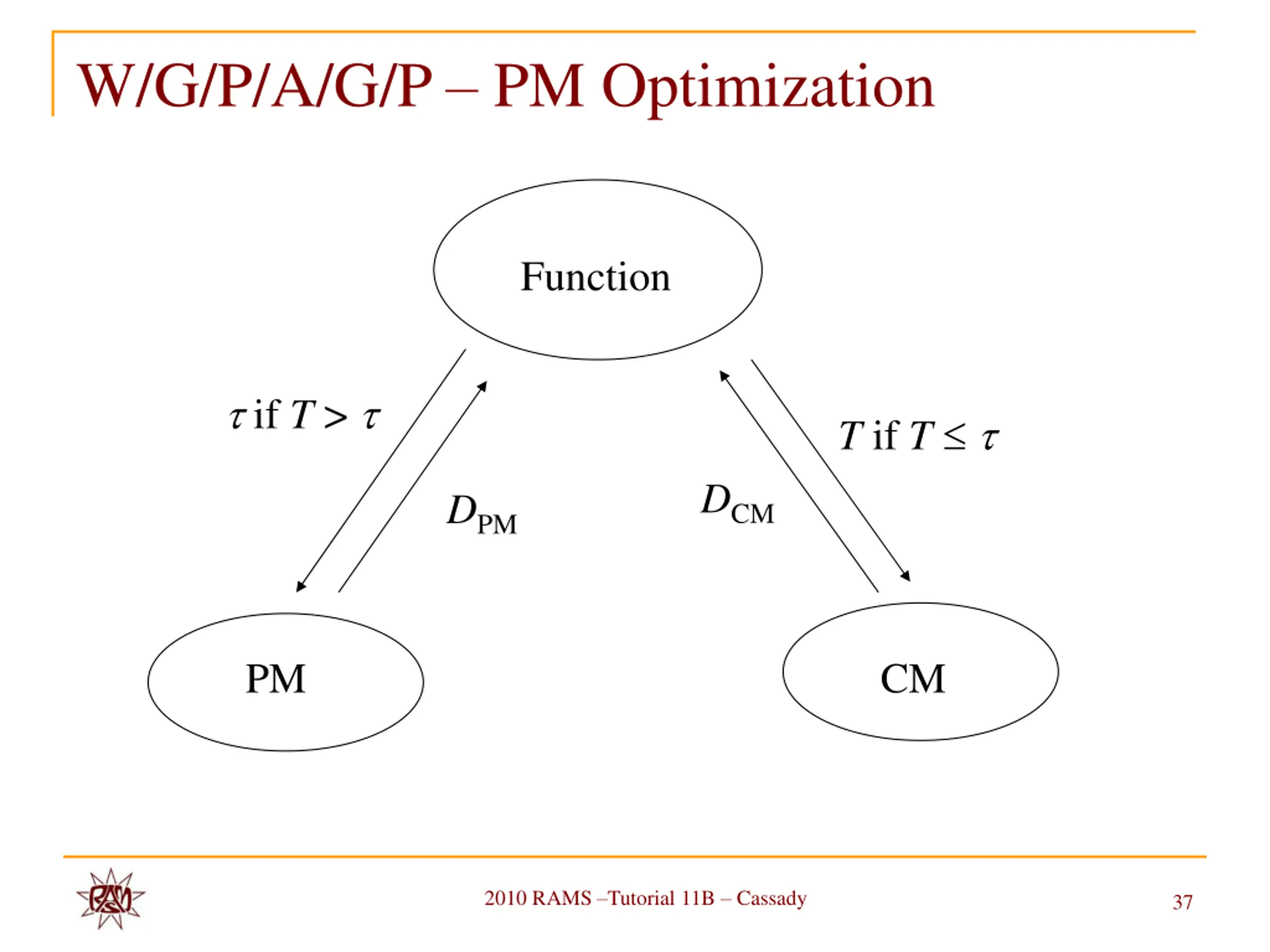 W/G/P/A/G/P PM Optimization Function if T > T if T DCM DPM PM CM 2010 RAMS Tutorial 11B Cassady 37