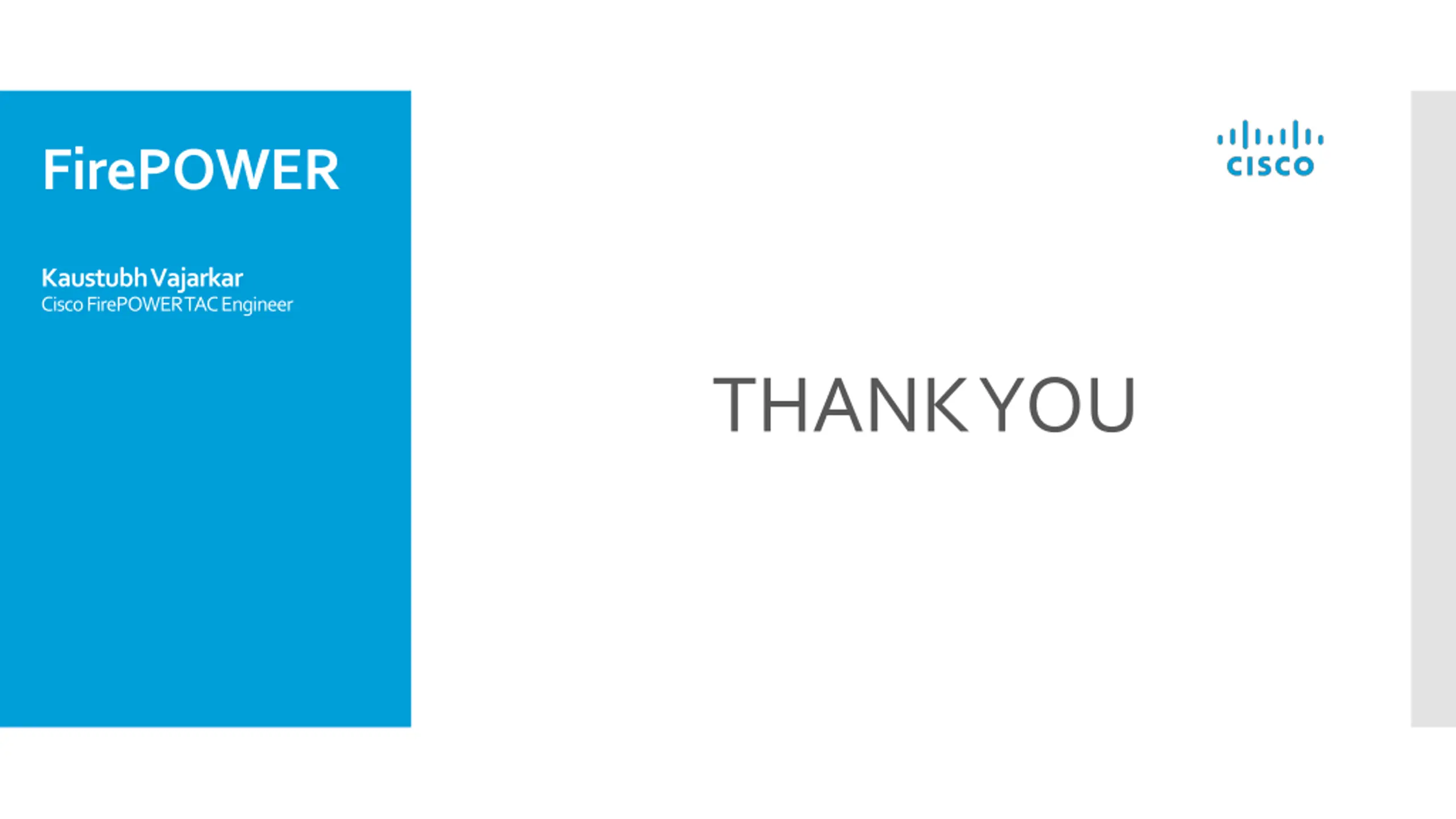 FirePOWER Kaustubh Vajarkar Cisco FirePOWER TAC Engineer THANK YOU