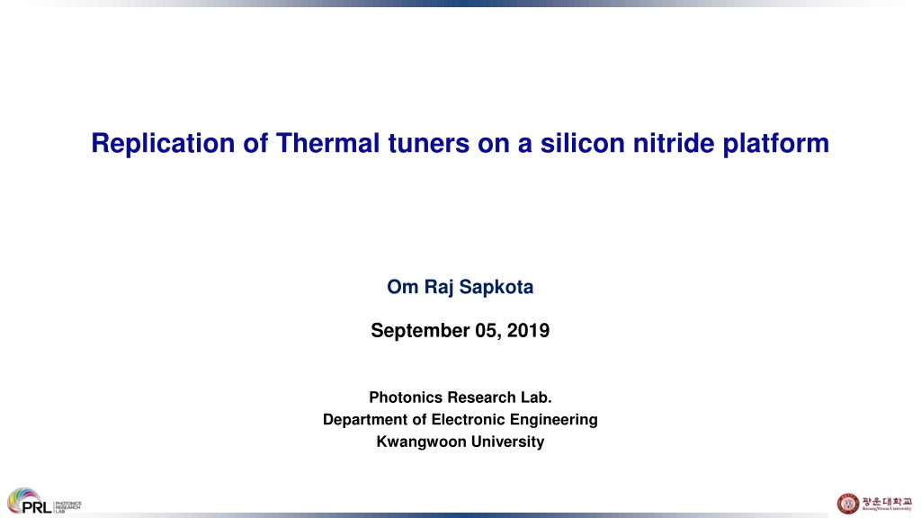 Replication of Thermal tuners on a silicon nitride platform Om Raj Sapkota September 05, 2019 Photonics Research Lab. Department of Electronic Engineering Kwangwoon University