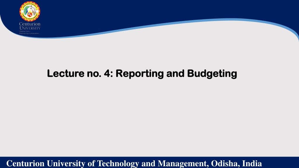 Lecture Lecture no no. . 4 4: : Reporting Reporting and and Budgeting Budgeting Centurion University of Technology and Management, Odisha, India