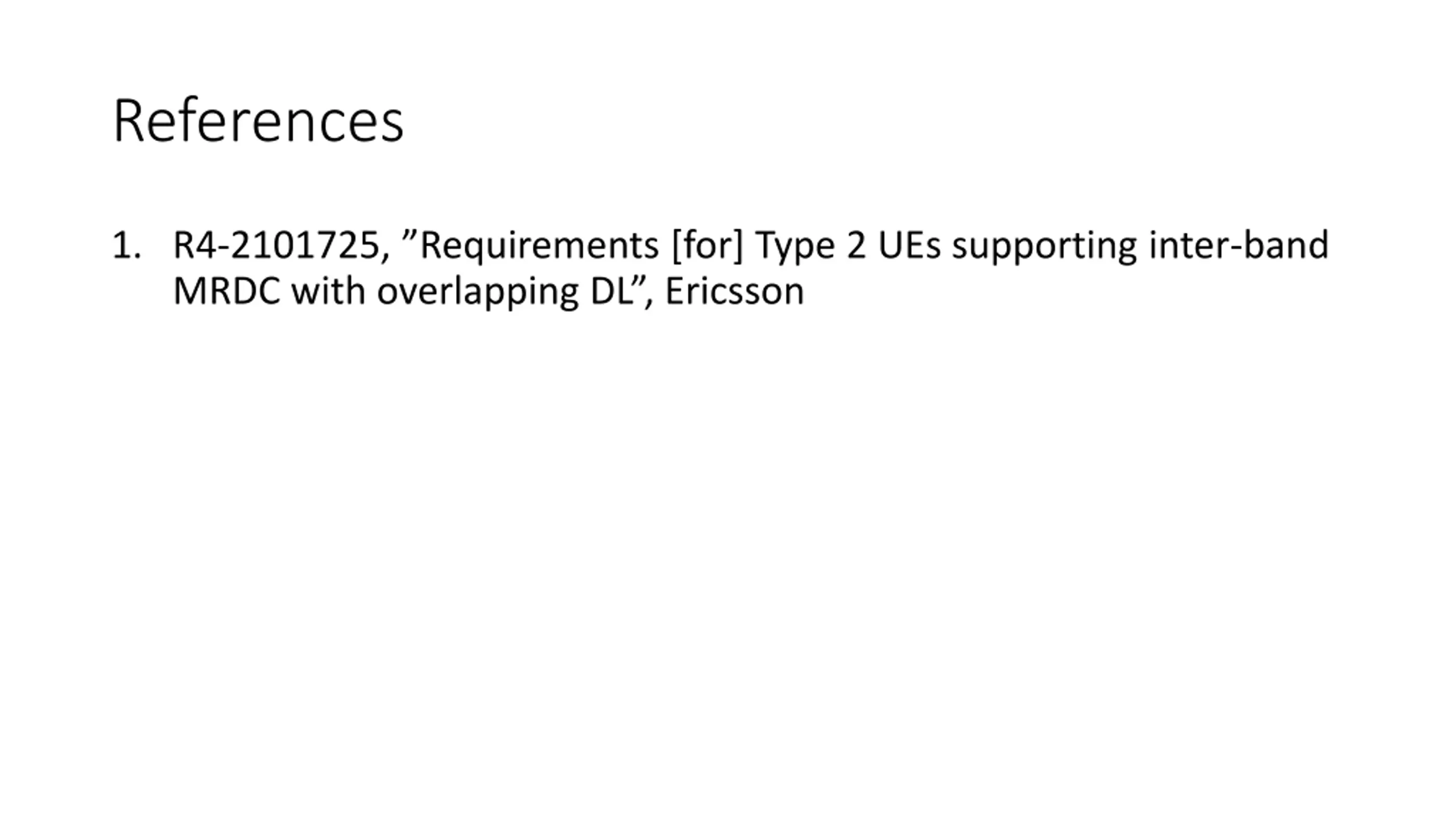 References 1. R4-2101725, Requirements [for] Type 2 UEs supporting inter-band MRDC with overlapping DL , Ericsson