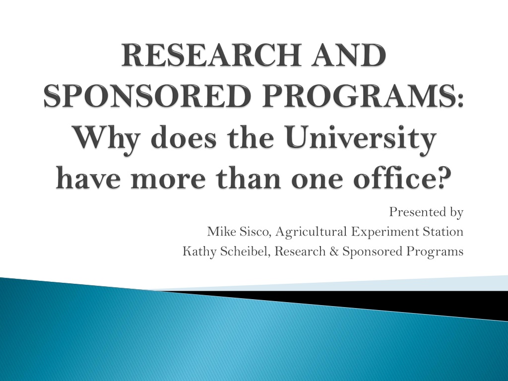 Presented by Mike Sisco, Agricultural Experiment Station Kathy Scheibel, Research & Sponsored Programs