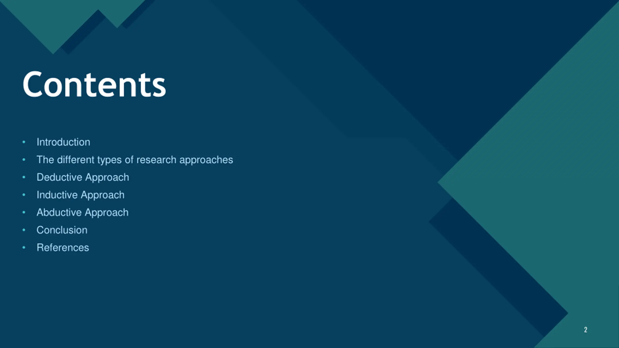 Click to edit Master title style Contents Introduction The different types of research approaches Deductive Approach Inductive Approach Abductive Approach Conclusion References 2 2