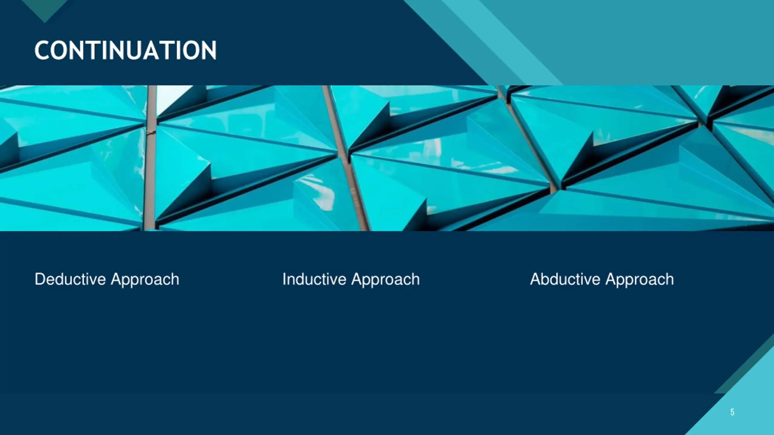 Click to edit Master title style CONTINUATION Deductive Approach Inductive Approach Abductive Approach 5 5