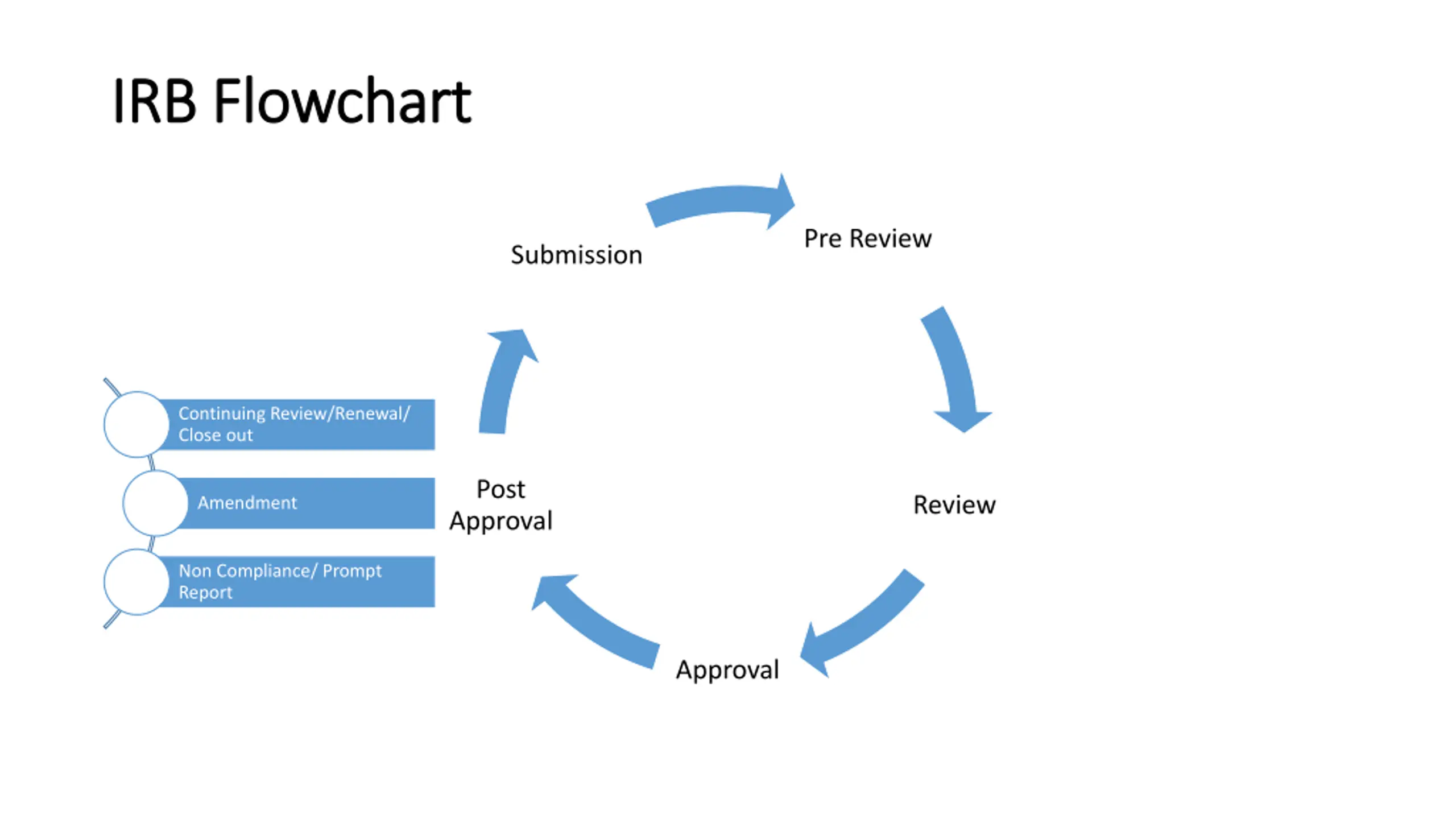 IRB Flowchart IRB Flowchart Pre Review Submission Continuing Review/Renewal/ Close out Post Approval Review Amendment Non Compliance/ Prompt Report Approval