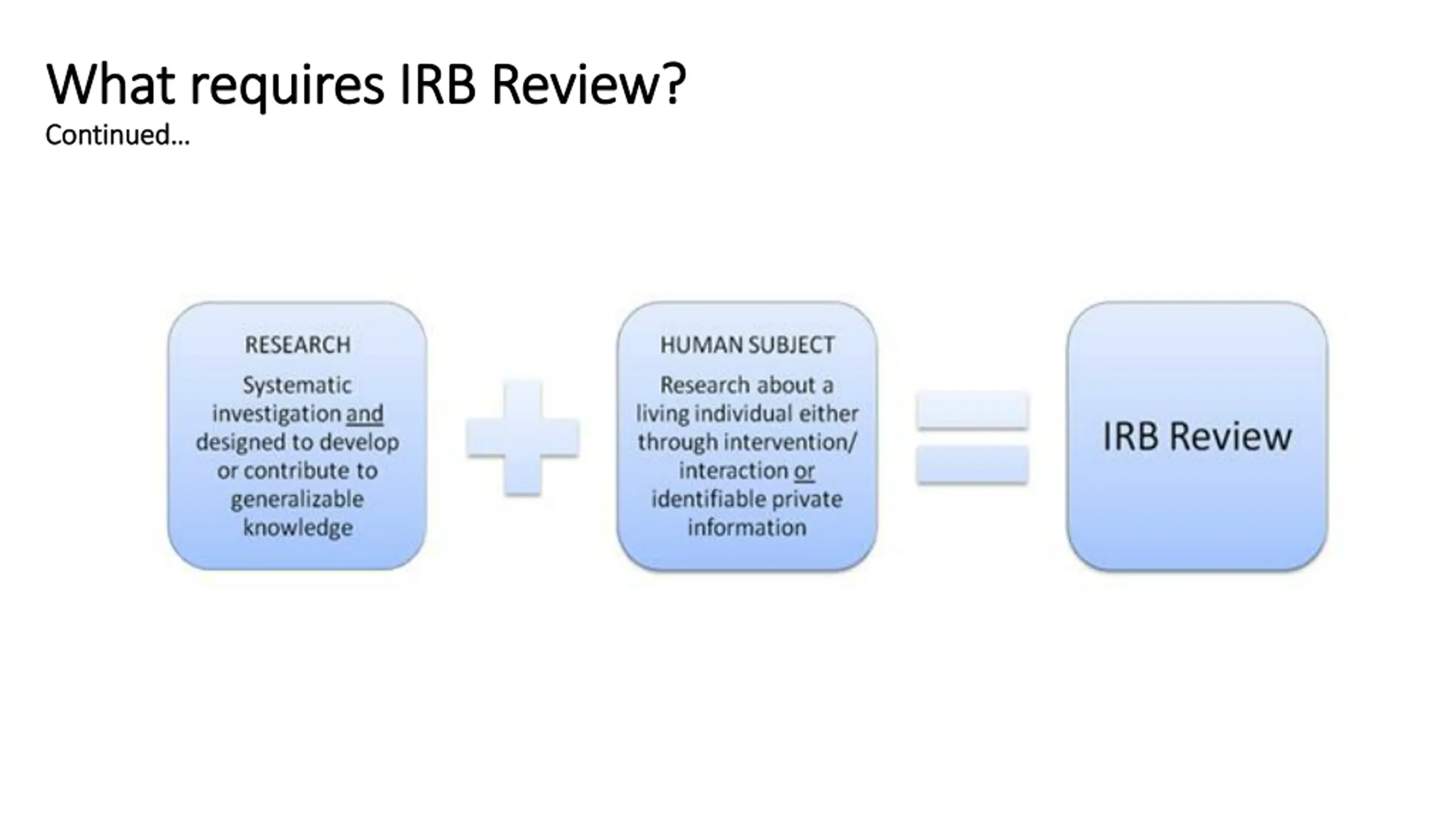What requires IRB Review? What requires IRB Review? Continued Continued