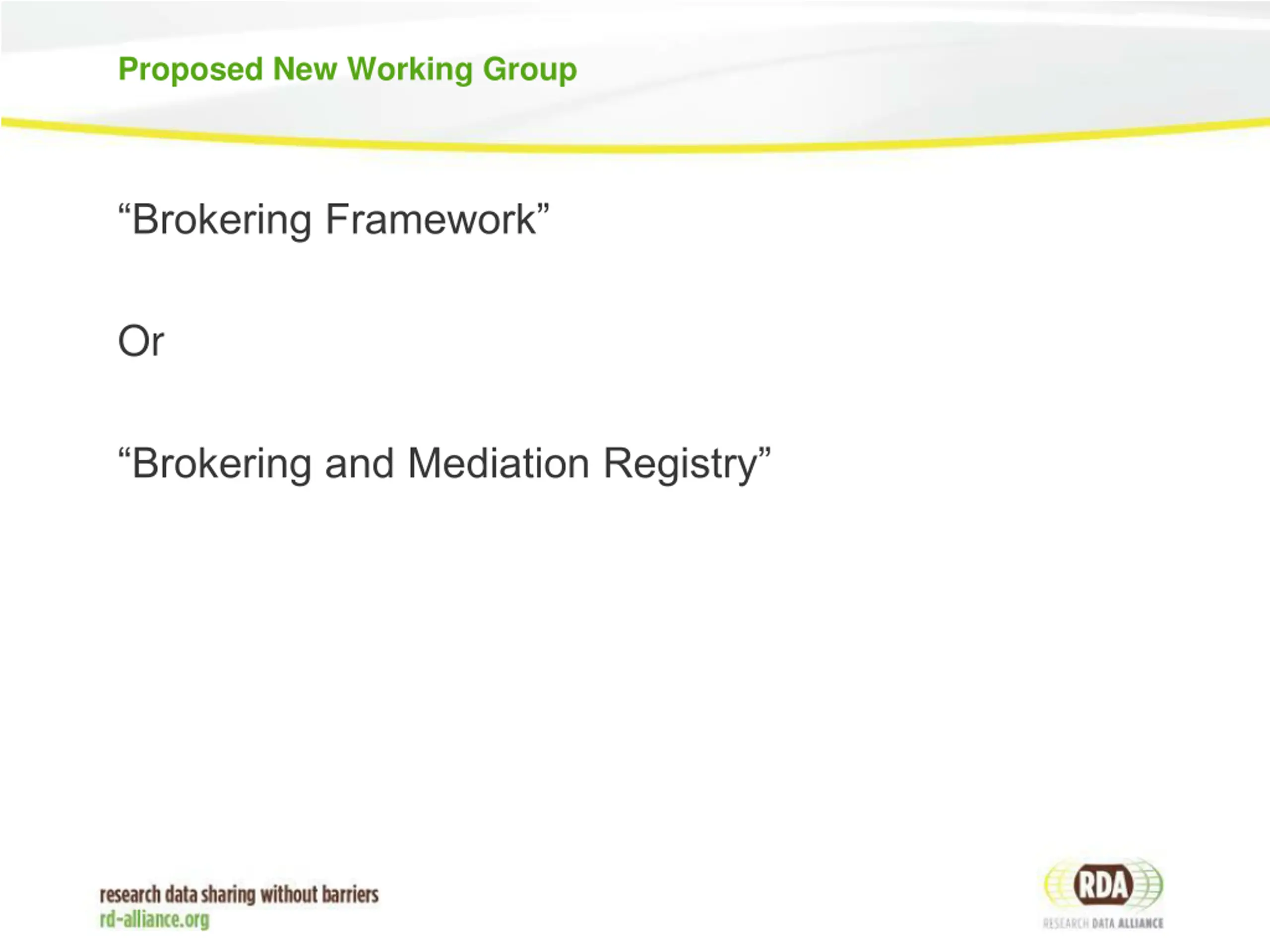 Proposed New Working Group Brokering Framework Or Brokering and Mediation Registry
