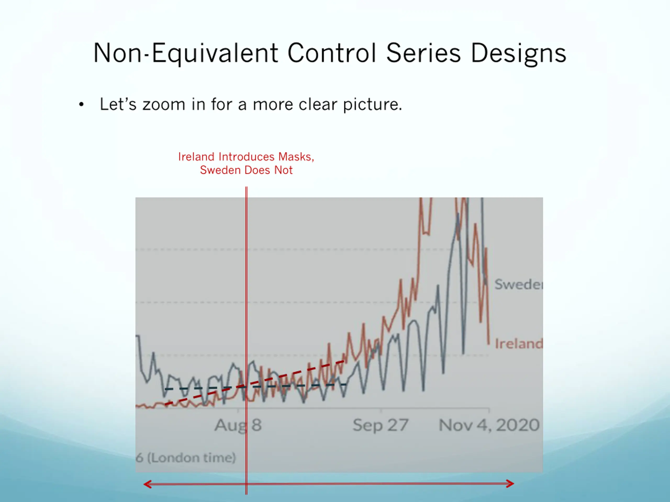 Non-Equivalent Control Series Designs Let s zoom in for a more clear picture. Ireland Introduces Masks, Sweden Does Not