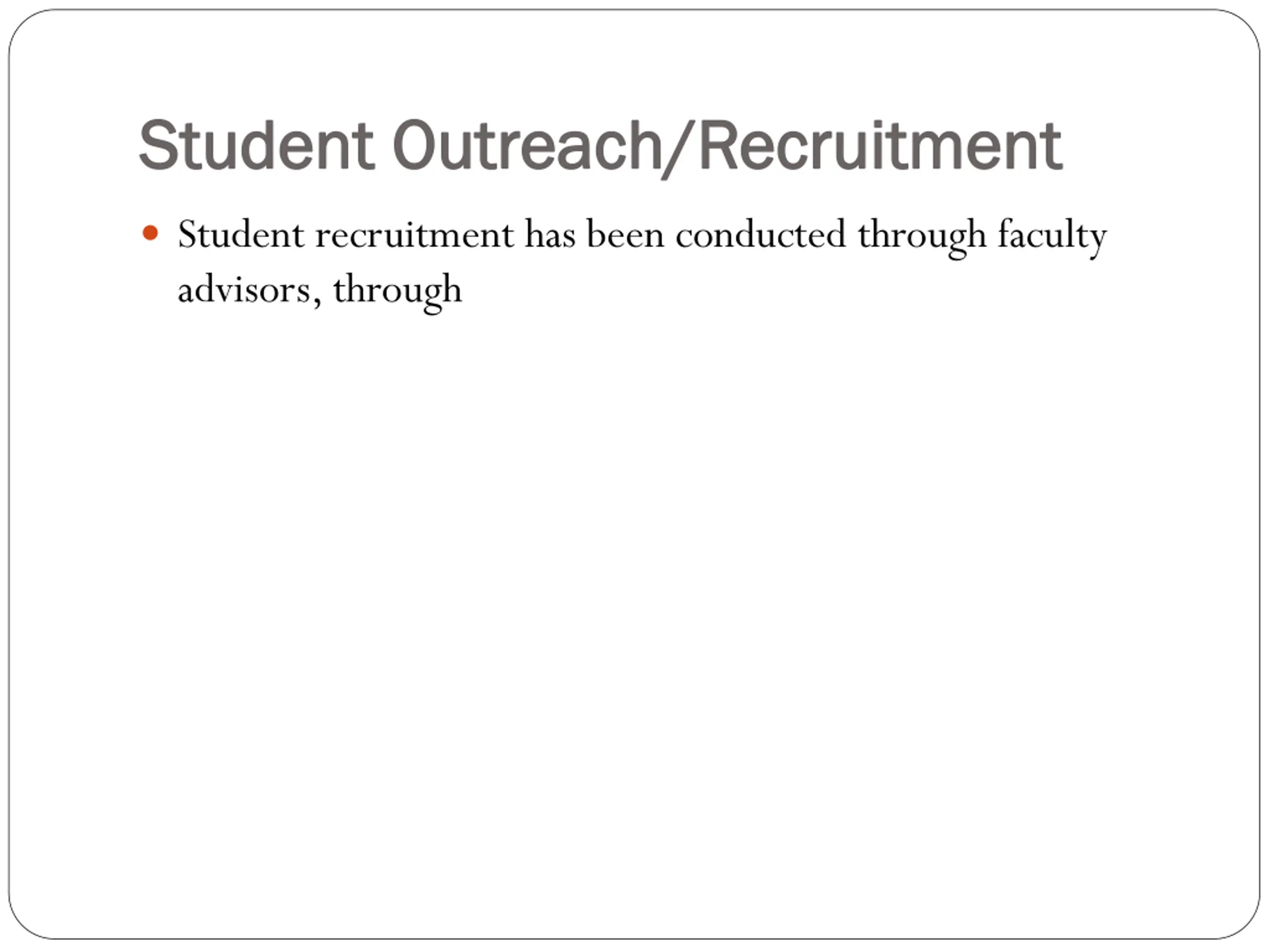 Student Outreach/Recruitment Student Outreach/Recruitment Student recruitment has been conducted through faculty advisors, through