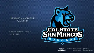Program Changes effective October 2021 Due to the implementation of the SRM model, the Administrator Research Due to the implementation of the SRM model, the Administrator Research Incentive Plan governance and administration will move to the colleges, Incentive Plan governance and administration will move to the colleges, with approval given by each college dean based upon guidelines with approval given by each college dean based upon guidelines established by the Office of Research and Innovation. established by the Office of Research and Innovation. GUIDELINES The program changes apply to ALL start date. The next incentive period will work towards realigning the time frame to the fiscal year calendar year calendar. The next period will cover September 1, 2021 June 30, 2022. Incentive will be calculated over a ten month period. Incentive requests will be submitted in July 2022. The subsequent submission will account for a full twelve months, beginning July 1, 2022 June 30, 2023. Incentive requests will be submitted in July 2023. ALL grants regardless of submission date or grant realigning the time frame to the fiscal