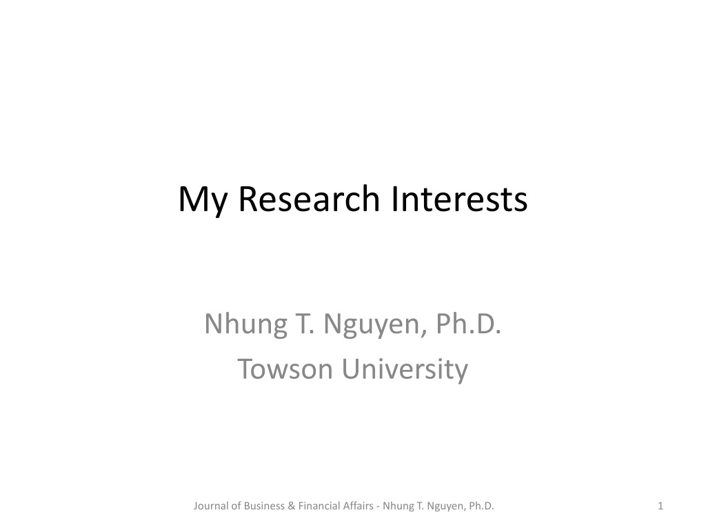 My Research Interests Nhung T. Nguyen, Ph.D. Towson University Journal of Business & Financial Affairs - Nhung T. Nguyen, Ph.D. 1