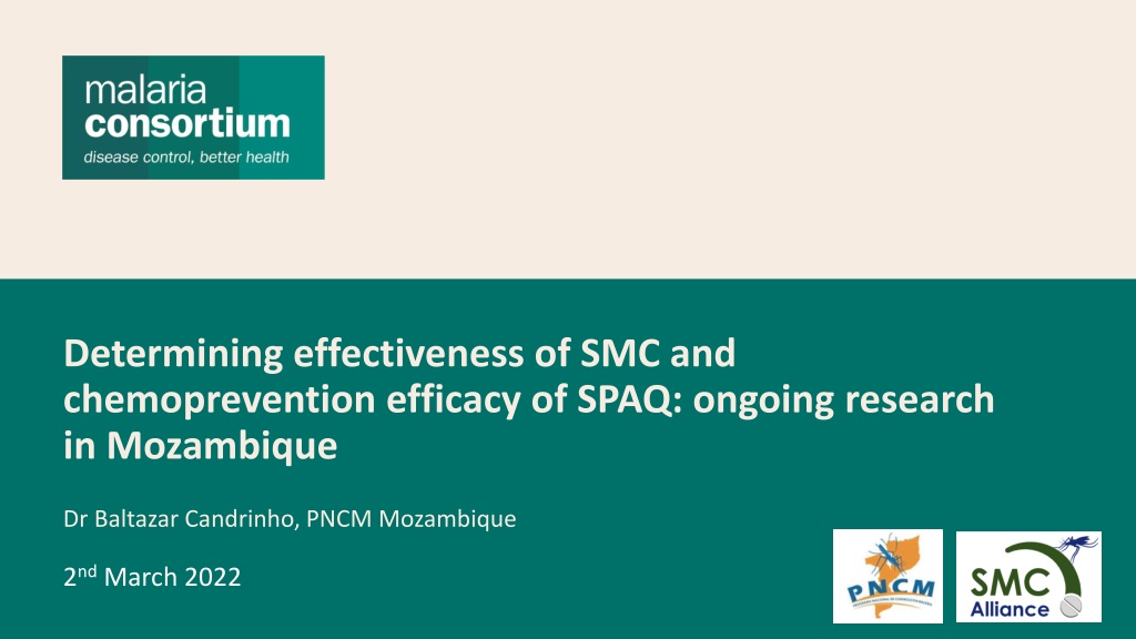 Determining effectiveness of SMC and chemoprevention efficacy of SPAQ: ongoing research in Mozambique Dr Baltazar Candrinho, PNCM Mozambique 2ndMarch 2022