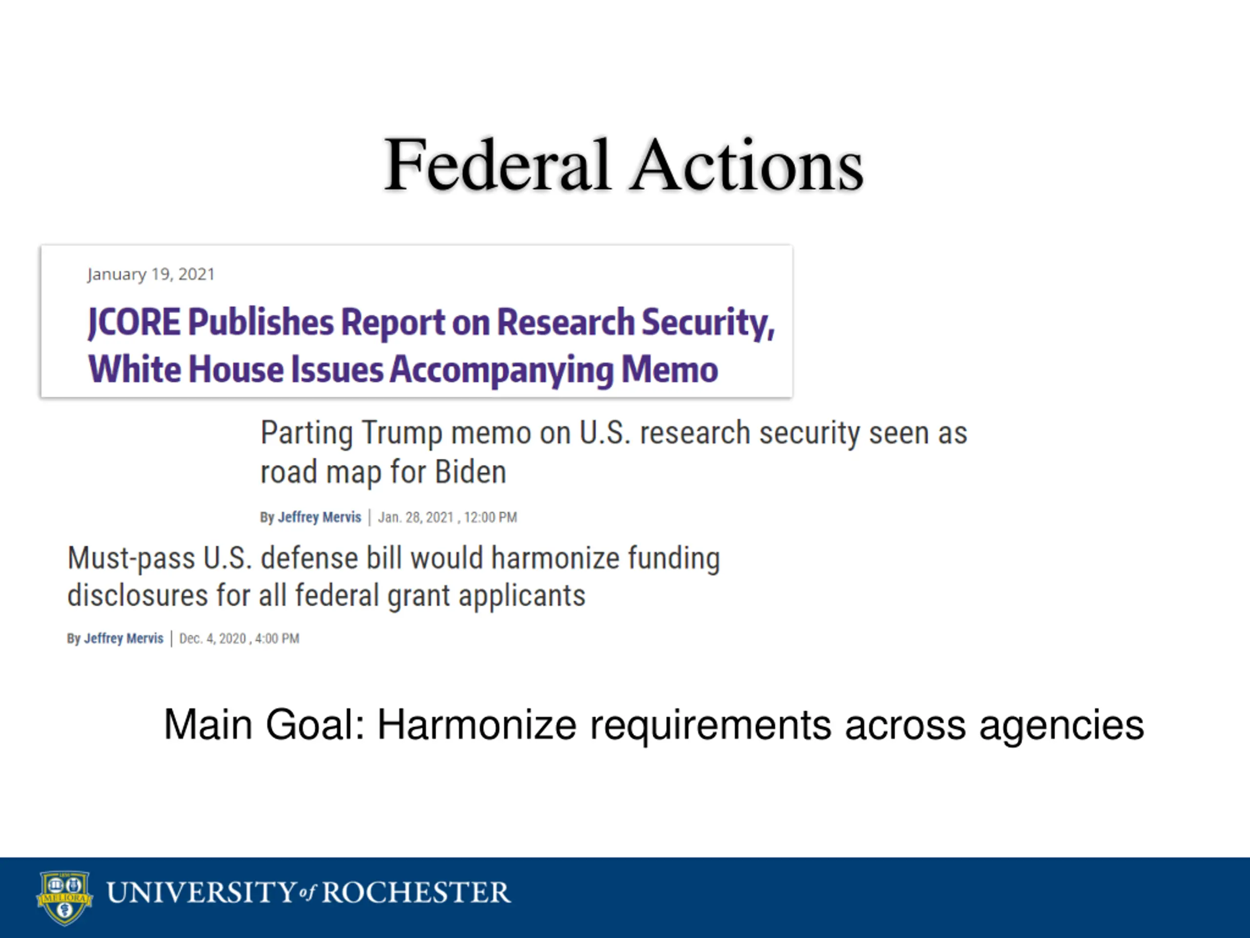Federal Actions Main Goal: Harmonize requirements across agencies