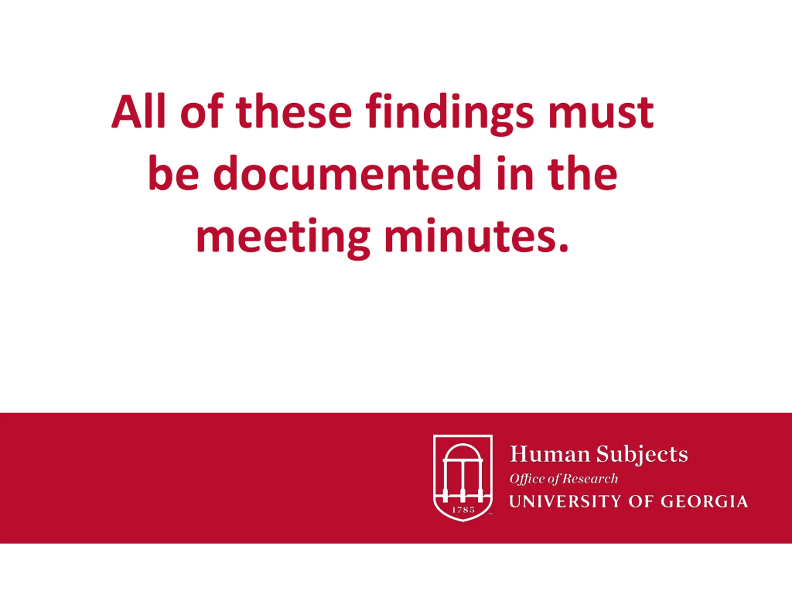 All of these findings must be documented in the meeting minutes.