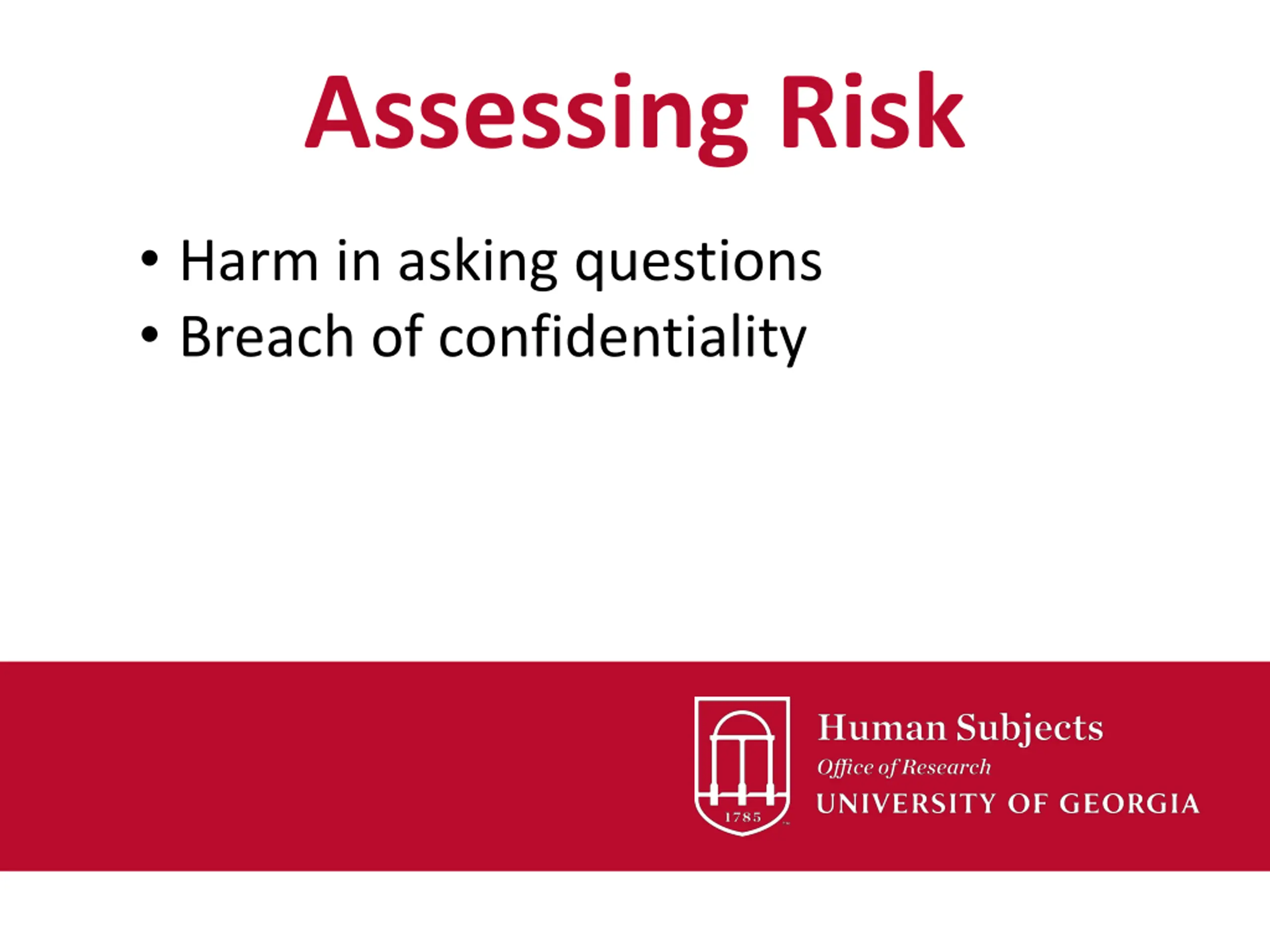 Assessing Risk Harm in asking questions Breach of confidentiality