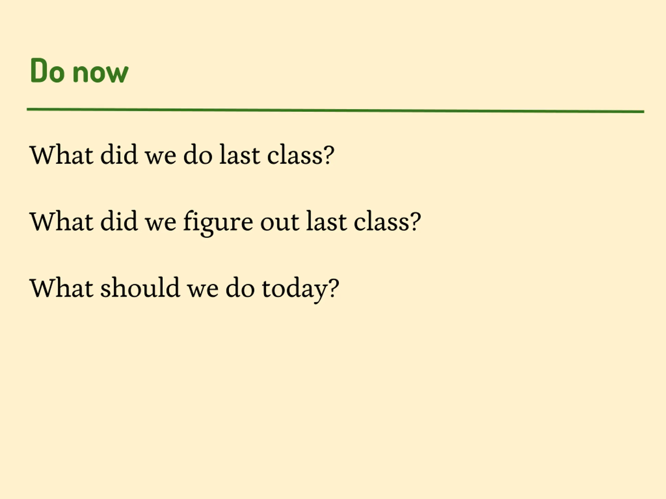 Do now What did we do last class? What did we figure out last class? What should we do today?