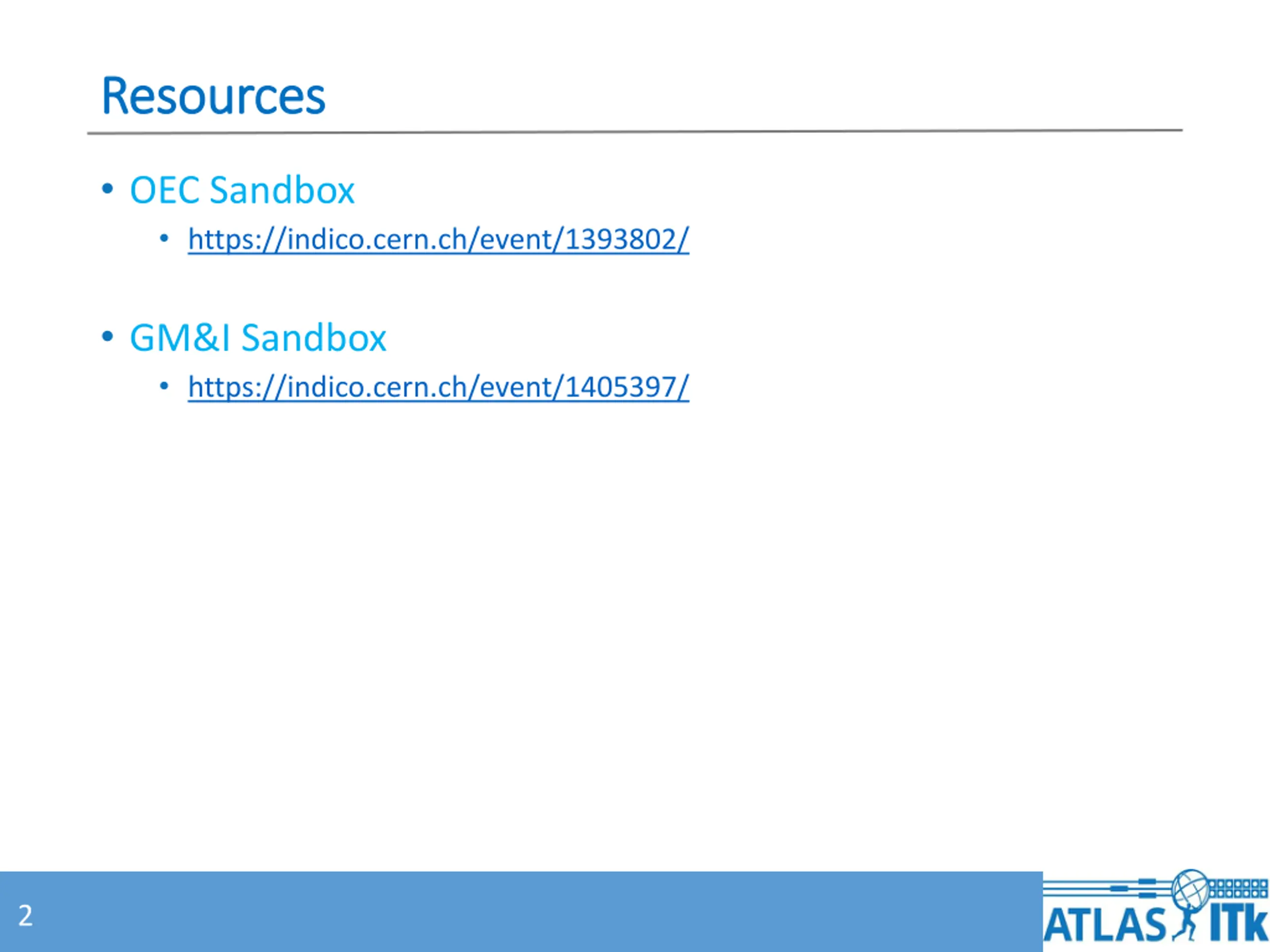 Resources Resources OEC Sandbox https://indico.cern.ch/event/1393802/ GM&I Sandbox https://indico.cern.ch/event/1405397/ 2