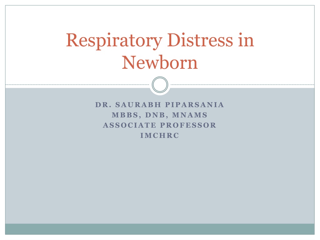 Respiratory Distress in Newborn DR. SAURABH PIPARSANIA MBBS, DNB, MNAMS ASSOCIATE PROFESSOR IMCHRC