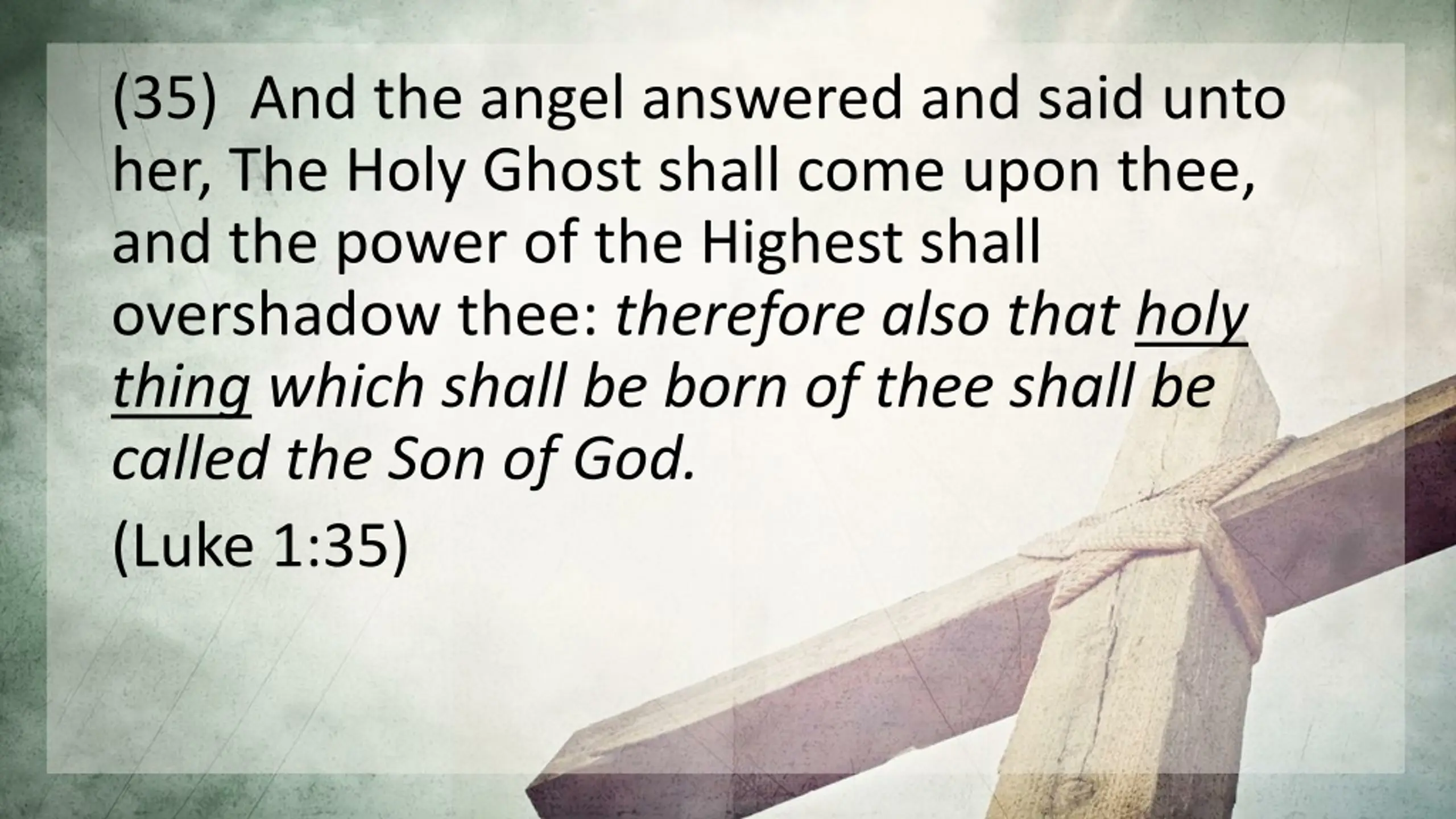 (35) And the angel answered and said unto her, The Holy Ghost shall come upon thee, and the power of the Highest shall overshadow thee: therefore also that holy thing which shall be born of thee shall be called the Son of God. (Luke 1:35)
