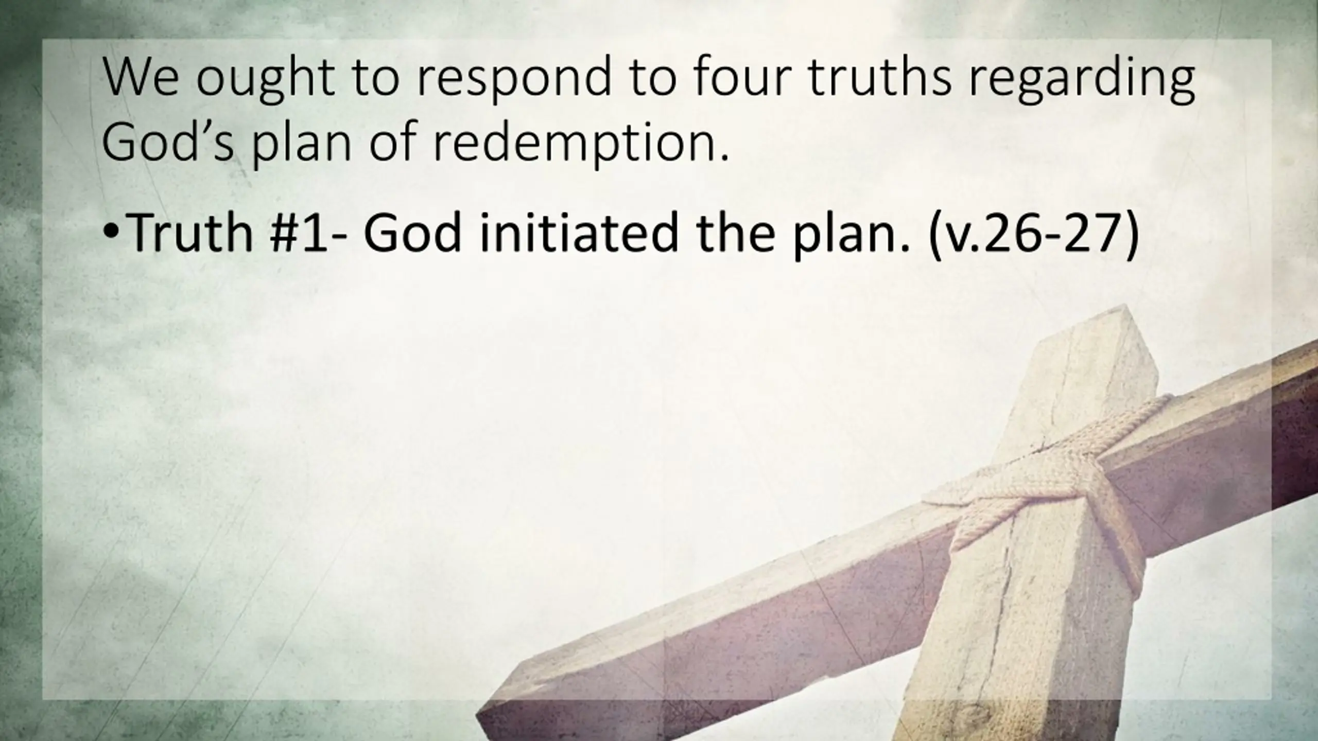 We ought to respond to four truths regarding God s plan of redemption. Truth #1- God initiated the plan. (v.26-27)