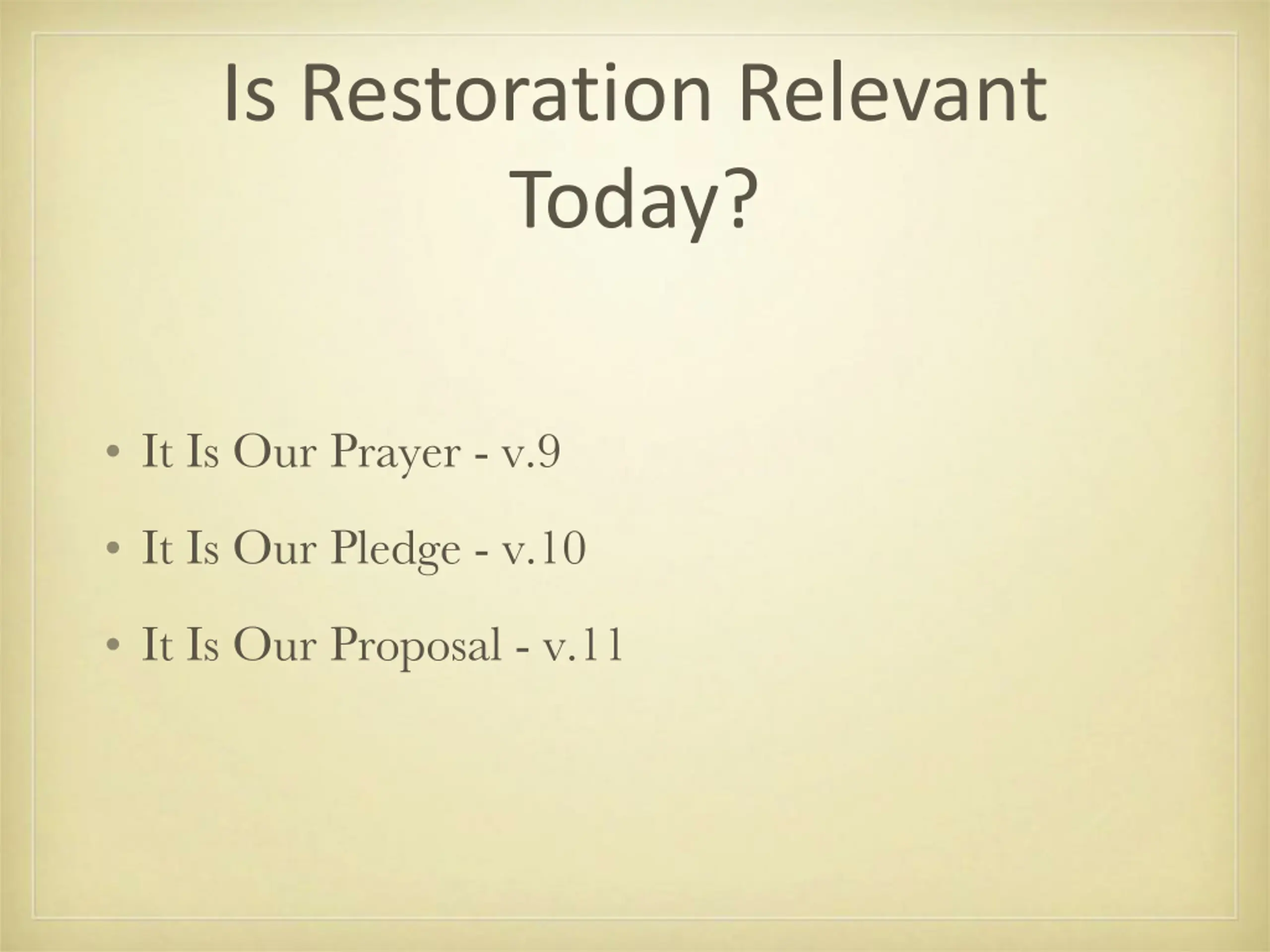 Is Restoration Relevant Today? It Is Our Prayer - v.9 It Is Our Pledge - v.10 It Is Our Proposal - v.11