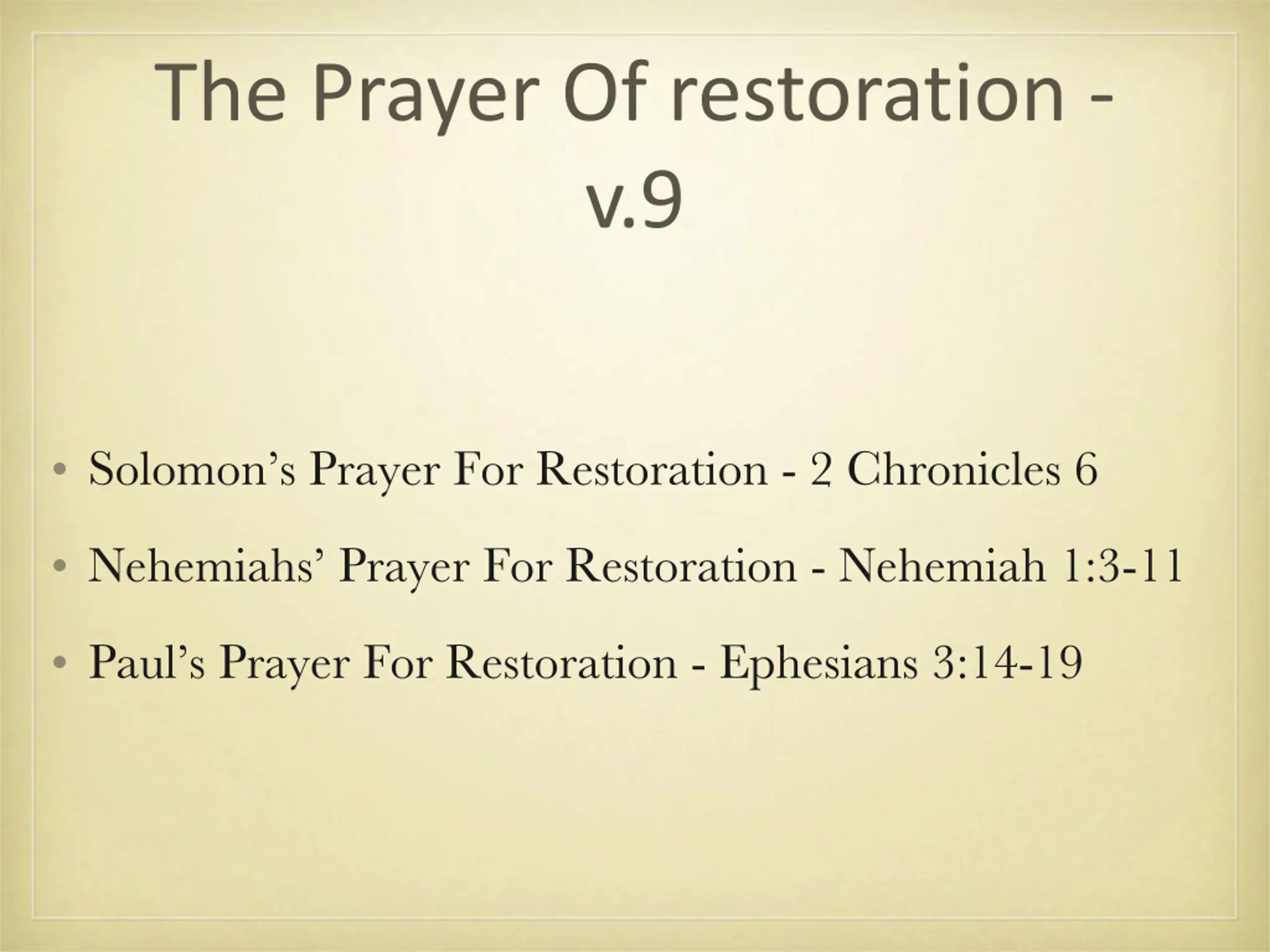 The Prayer Of restoration - v.9 Solomon s Prayer For Restoration - 2 Chronicles 6 Nehemiahs Prayer For Restoration - Nehemiah 1:3-11 Paul s Prayer For Restoration - Ephesians 3:14-19
